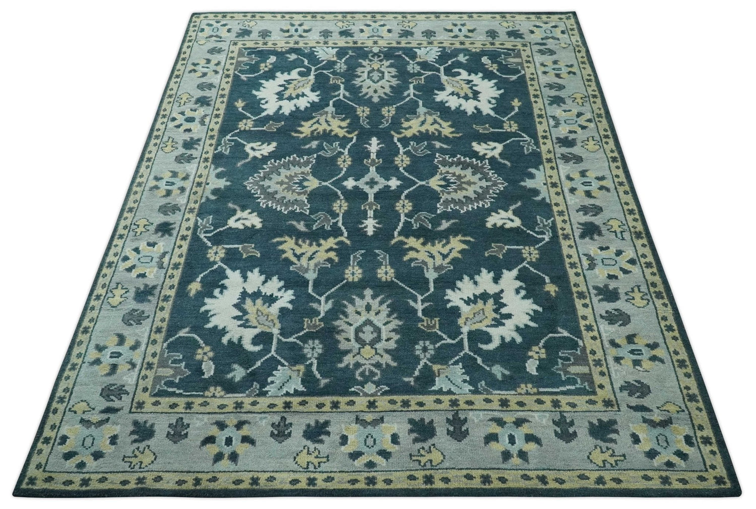 Dark Teal, Silver, Blue and Ivory Hand Knotted Traditional Oushak Multi Size Area Rug