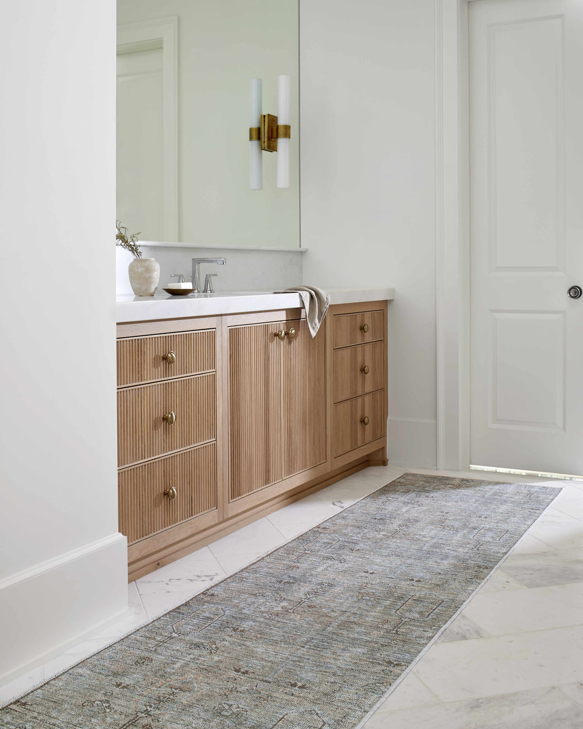 For the kitchen, select a rug to place in front of the sink or under the countertops, offering comfort while standing and adding warmth to the space.