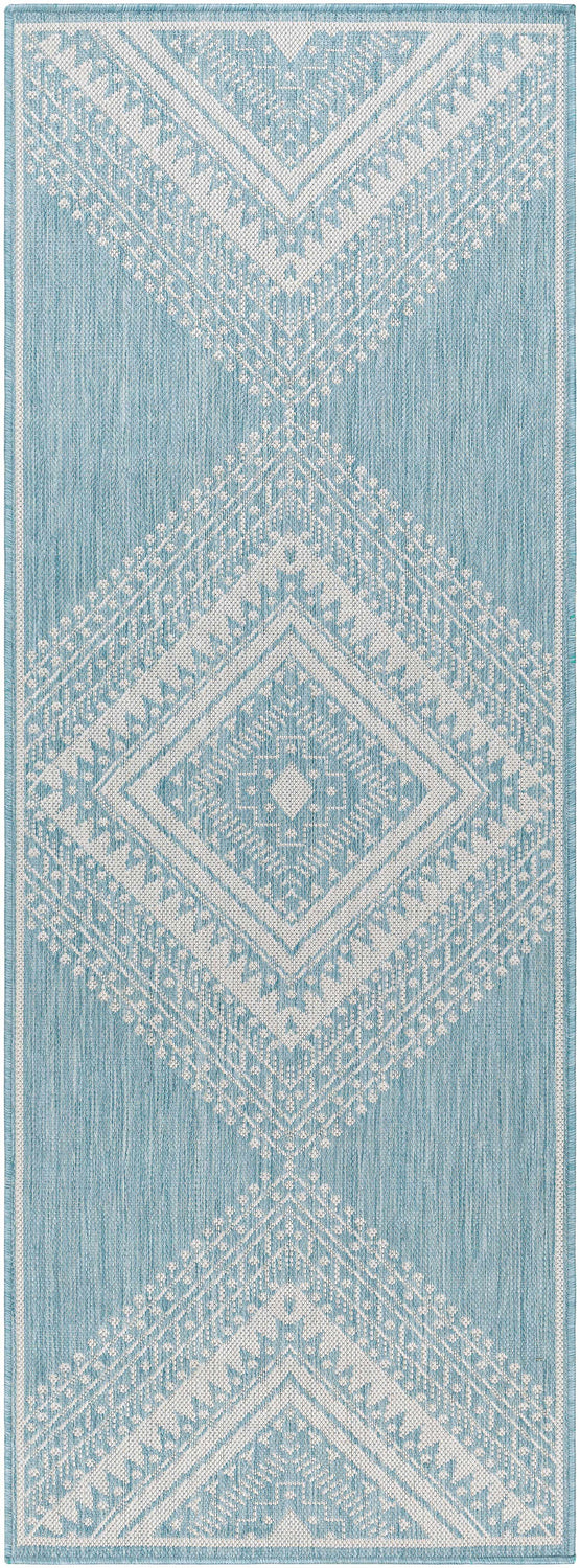 This Deana Blue Area Rug from Turkey is the perfect addition to any home. It features an eye-catching global style pattern that will add a unique flair to your living space. Crafted from machine-woven polypropylene, this high-traffic and outdoor safe rug is designed for lasting use and durability. Recommended use with a rug pad (not included) provides extra cushioning and stability. Add modern style to your home today with this long beach area rug!
