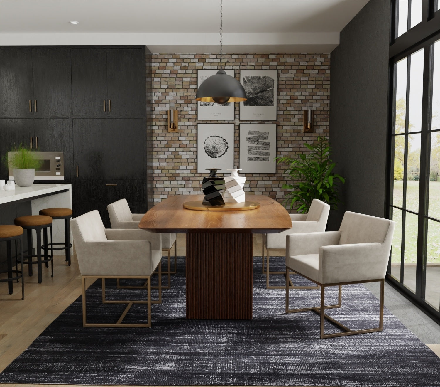 When selecting a dining room rug, choose one large enough to fit under the table and chairs, ensuring that when the chairs are pulled out, they remain on the rug for a balanced look.