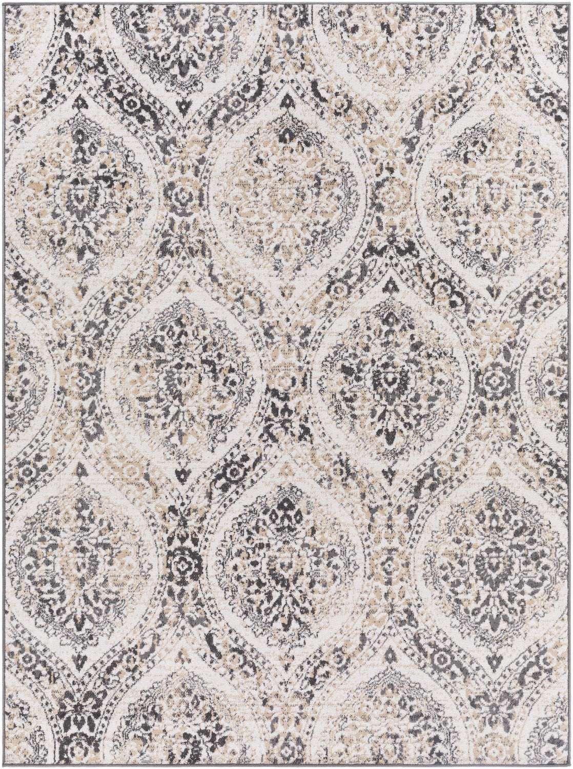 The Delmar Area Rug Collection showcases traditional inspired designs that exemplify timeless styles of elegance, comfort, and sophistication. The meticulously woven construction of these pieces boasts durability and will provide natural charm into your decor space. Made with Polypropylene in Turkey, and has Medium Pile.