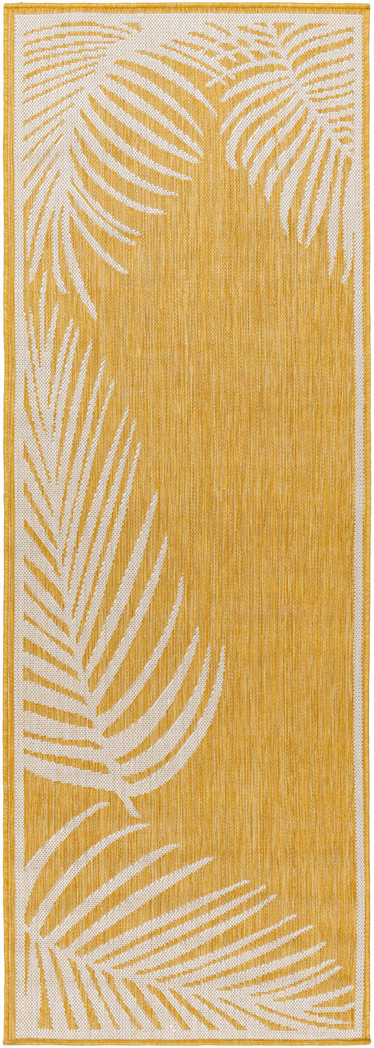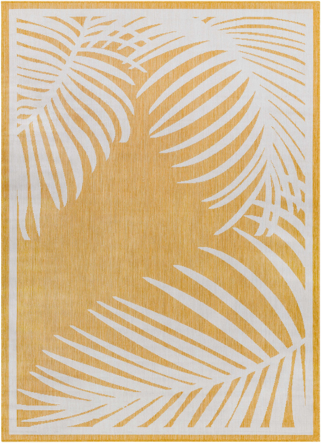 Immerse yourself in the relaxing vibes of a tropical beach with our Dina Mustard Area Rug collection area rug. Designed to evoke the beauty of coastal living, this rug is made from durable polypropylene in Turkey and features a machine woven construction. It boasts a no-pile design, making it an excellent choice for high-traffic areas and even outdoor spaces for that summery feel year-round. To ensure longevity and prevent slippage, we recommend use with a rug pad. When it comes to maintenance, simply hose off with water and hang to dry ? it's that easy! Transform your space into a serene seaside retreat with this stunning area rug.