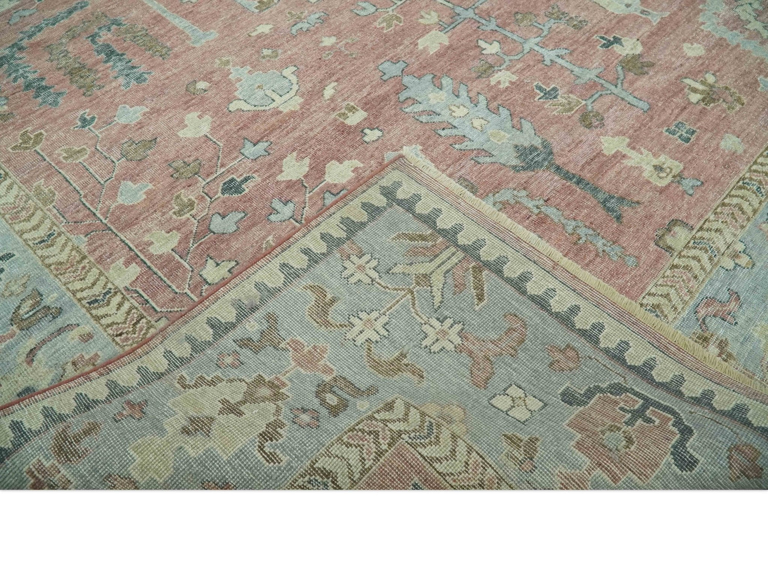 Distress Finished Tree of Life Hand Knotted Rust and Blue Custom Made Wool Rug