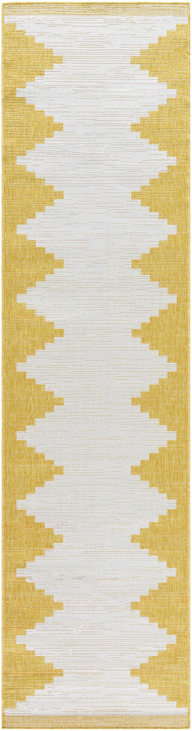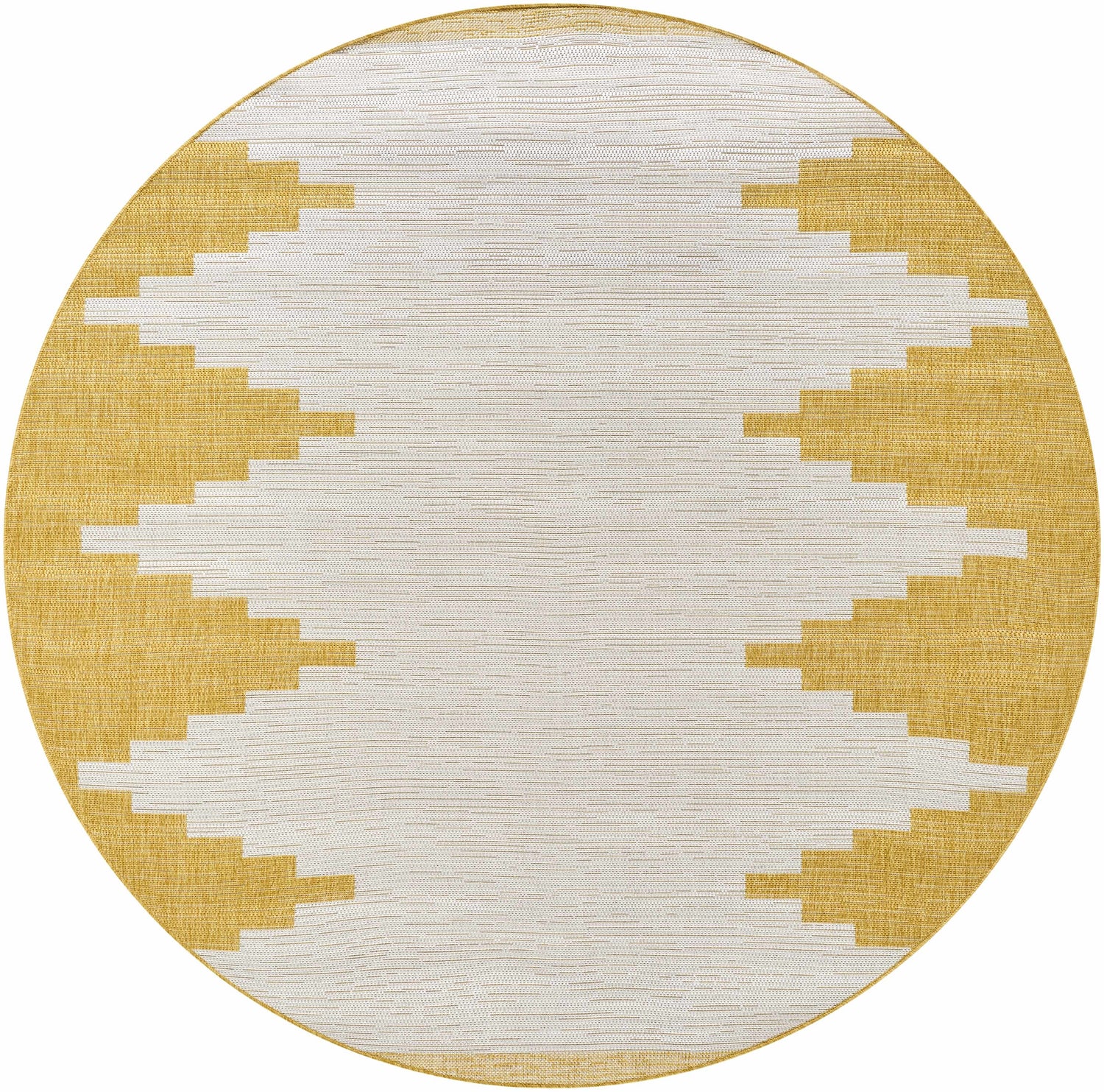 This Djugun Yellow Outdoor Area Rug is perfect for any outdoor space! Its machine woven construction and polypropylene material make it resistant to fading, water and other weather conditions, making it ideal for high traffic areas. The global style design is sure to add a touch of modern flair to your outdoor decor. Made in Turkey, this rug is easy to maintain - just hose off with water and hang to dry! For best results, use with a rug pad (not included).