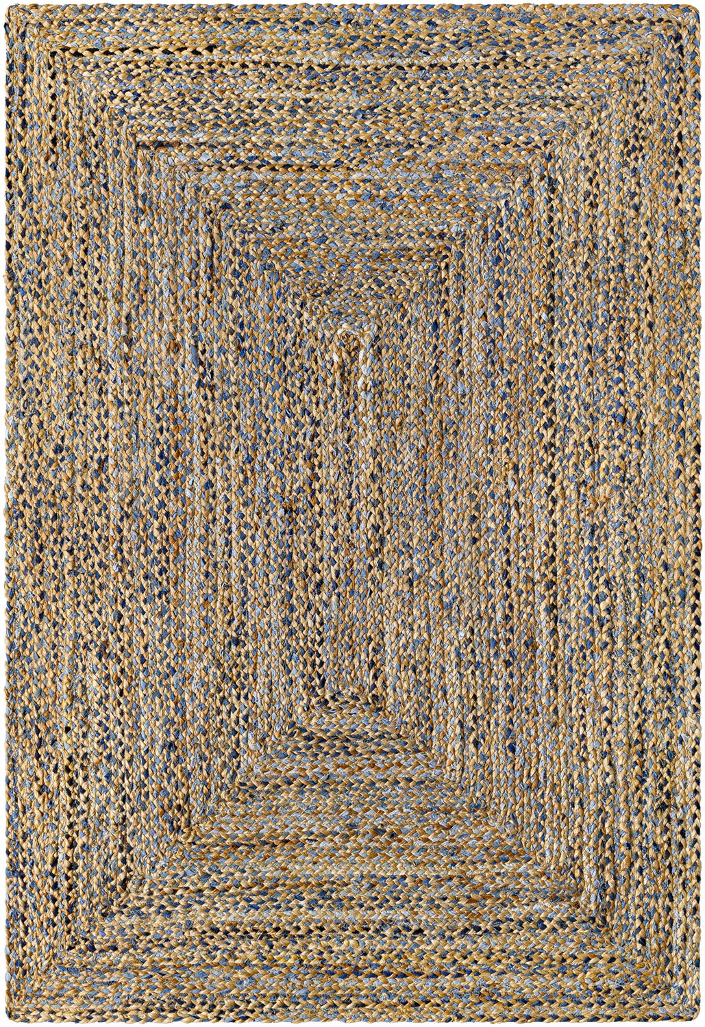 This Druce Jute & Blue Jean Area Rug is the perfect addition to any modern home. Hand loomed in India with recycled fabric and jute, this unique piece features a flat weave construction that makes it highly durable and easy to clean. The no pile design gives it an airy look without compromising on comfort or style. For a secure hold, we recommend using a rug pad underneath (sold separately). Add some flair to your living space with this stylish and eco-friendly floor covering.