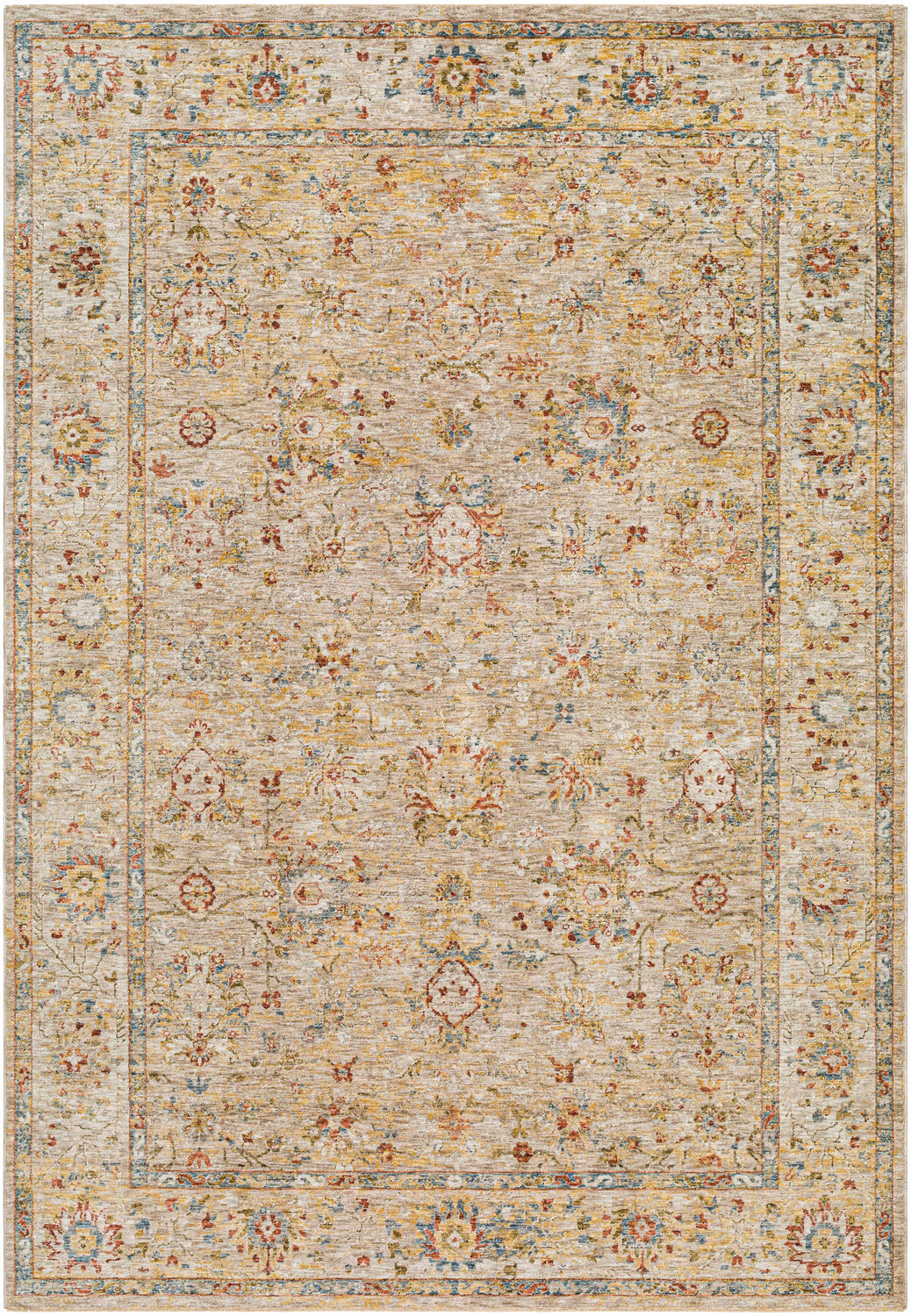 Introducing the Duong Beige Area Rug, a timeless classic for your home. This updated traditional style rug is sure to add charm and elegance to any room with its fringed edges and unique design. Made of high quality polyester and machine woven in Turkey, this medium pile area rug is soft underfoot while being durable enough for high traffic areas. It's also easy to care for; simply vacuum regularly or spot clean as needed. For added comfort, we recommend pairing it with a non-slip rug pad (not included). Make the Duong Beige Area Rug part of your decor today!
