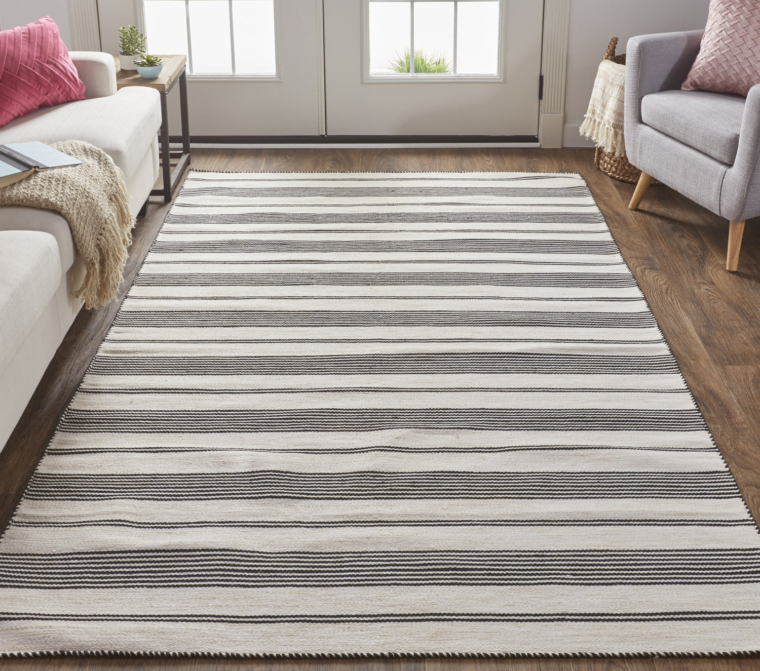 Feizy Duprine Transitional Stripes - Black/White/Ivory Area Rug