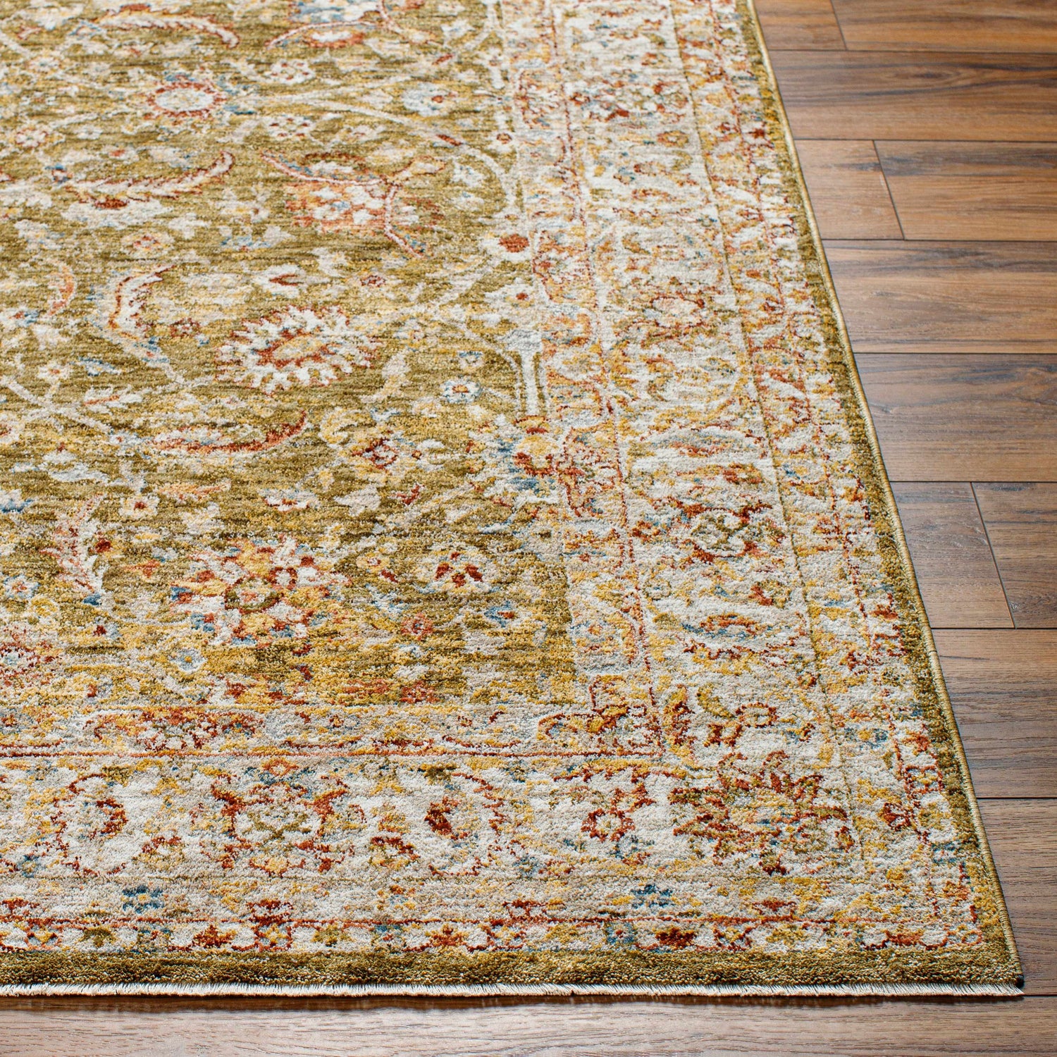 Add a touch of timeless elegance to your home with the Dyan Green Area Rug. Expertly crafted in Turkey using machine-woven polyester, this traditional-style rug features a medium pile and fringe for added texture and dimension. It is also highly durable, making it perfect for high traffic areas in your home. For extra cushioning and protection, we recommend using a rug pad (not included). Whether it's placed in an entryway or living room, this sophisticated area rug will be sure to make an impact.