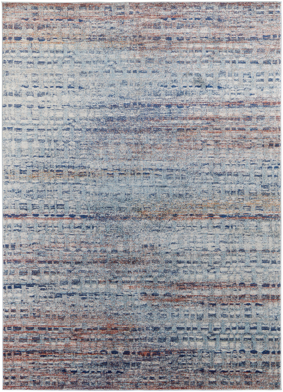 A painterly blend of blue, ivory, and rust in a faded abstract pattern — the Edgemont brings modern artistic energy to any room with durable, low-pile polypropylene construction.