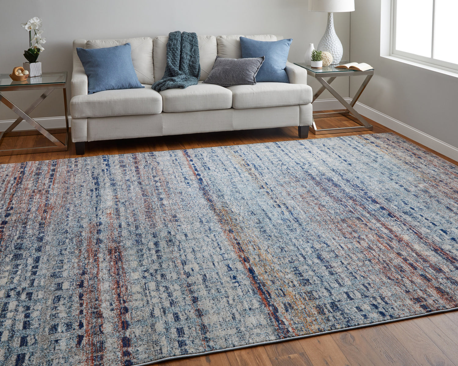 Feizy Edgemont Modern Abstract - Blue/Ivory/Orange Area Rug - Clearance