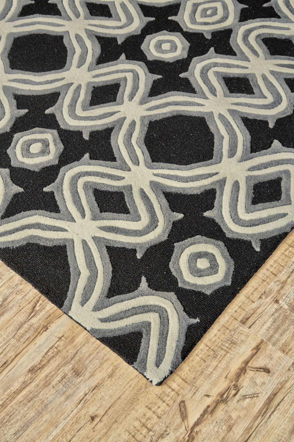 Feizy Ella Transitional Abstract - Black/Ivory/Gray Area Rug - Clearance