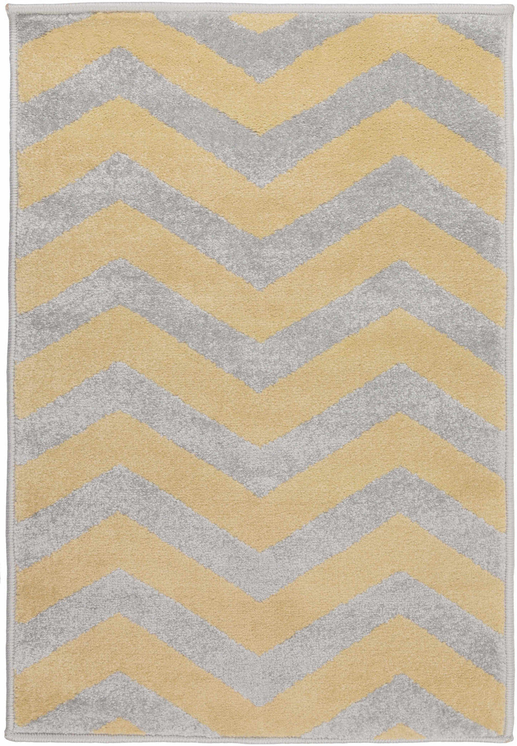 A bold yellow and gray chevron rug that brings modern energy to any room — stain resistant, durable polypropylene, and ready for everyday life.