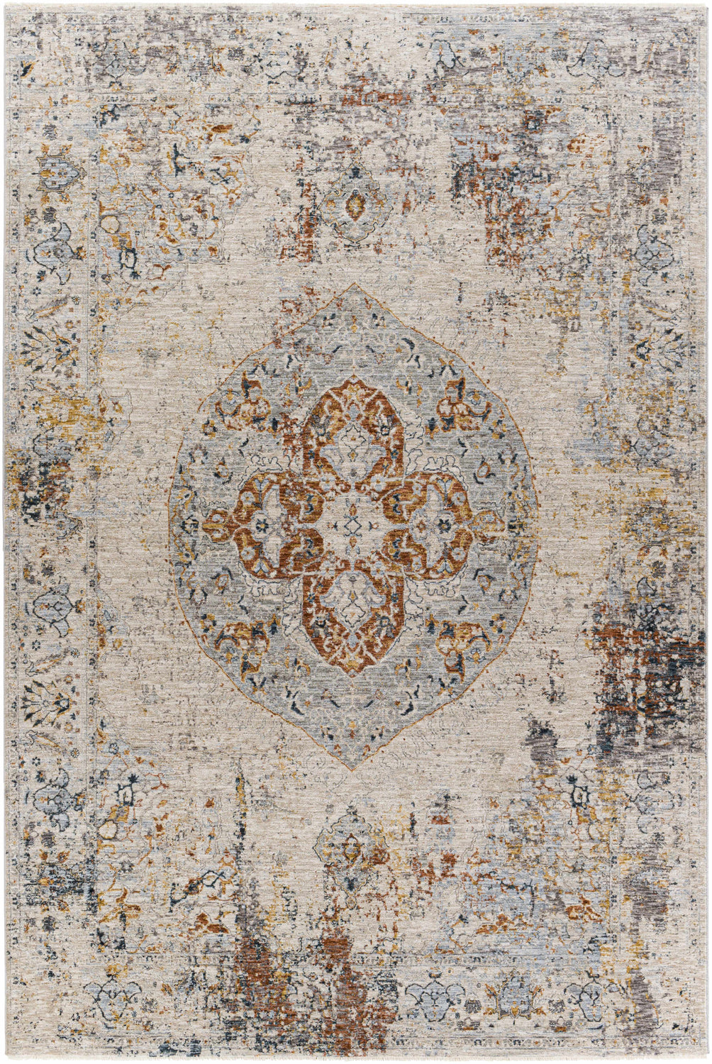 Enhance your home decor with this beautiful Ely Area Rug. Crafted in Turkey from polyester, this medium-pile rug offers a luxurious feel and is designed to last for years. The traditional style of the rug offers an eye-catching look that will complement any room. The machine woven construction ensures durability and high traffic capabilities, while the high/low design adds dimension to the piece. This area rug is perfect for adding a touch of elegance to any space! Rug pad recommended for added comfort and stability. Professional cleaning only.