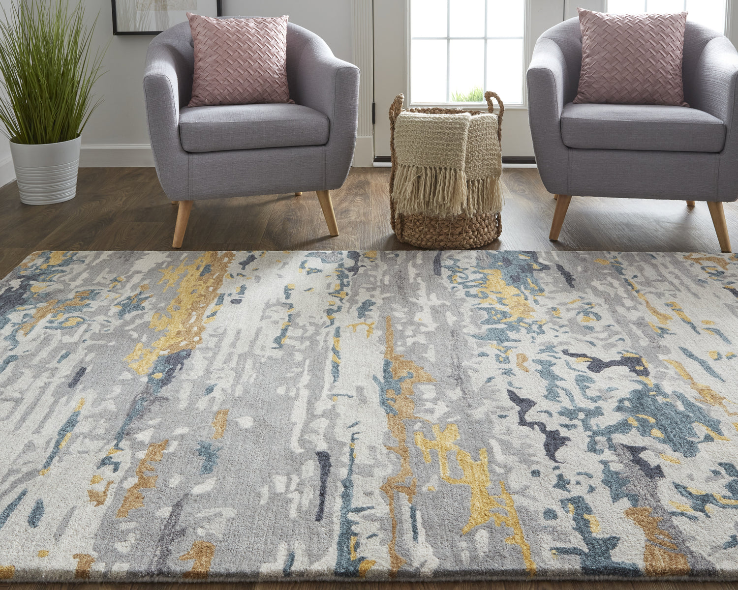 Feizy Everley Modern Abstract - Gray/Yellow/Blue Area Rug
