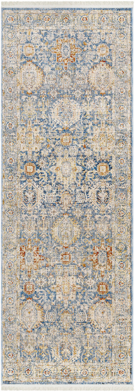 This luxurious area rug from the Eytan Area Rug Collection will bring timeless elegance to your home. Crafted of premium polyester, this Turkish-made rug features a low pile for easy maintenance and durability. This Updated Traditional style rug has a fringe that adds texture and dimension to any room, making it perfect for high traffic areas. For added comfort, we recommend using with a rug pad (not included). Transform your space into an inviting oasis with this beautiful piece from the Eytan Area Rug Collection.