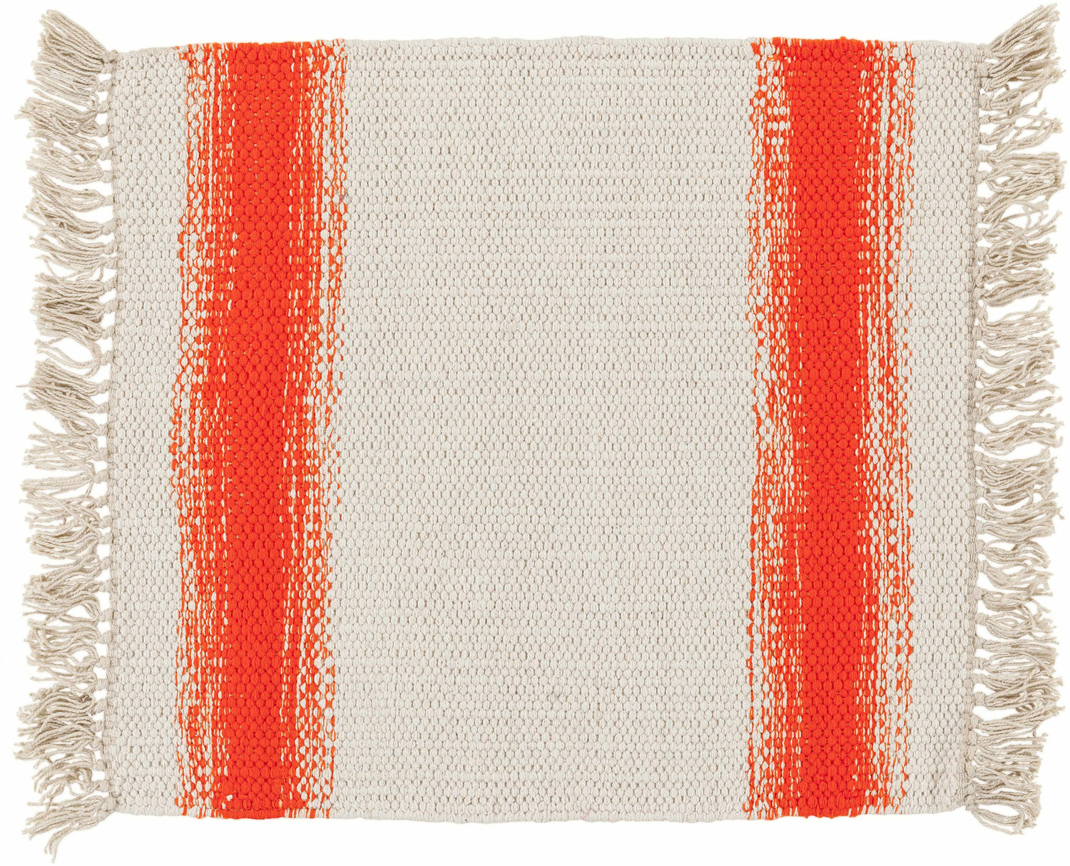 The simplistic yet compelling rugs from the Farsley Area Rug Collection effortlessly serve as the exemplar representation of modern decor. The meticulously woven construction of these pieces boasts durability and will provide natural charm into your decor space. Made with Acrylic, Cotton, Polyester in India, and has No Pile.