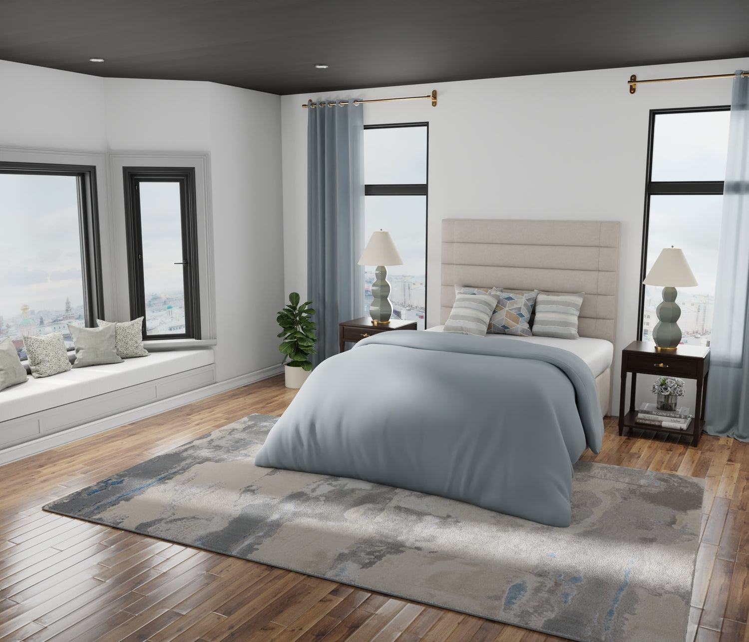 In the bedroom, opt for a rug that extends under the bed, providing a soft surface to step onto when getting out of bed and creating a cozy atmosphere.