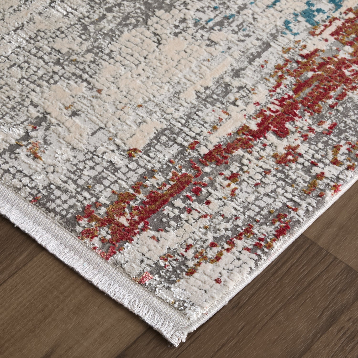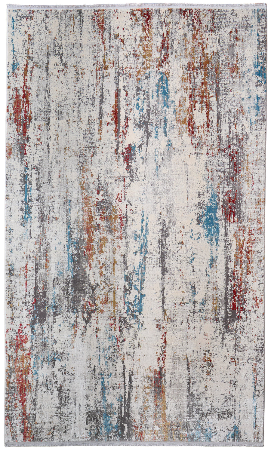 Feizy Cadiz Modern Abstract Distressed Abstract Brushstrokes - Gray/Red/Blue Area Rug