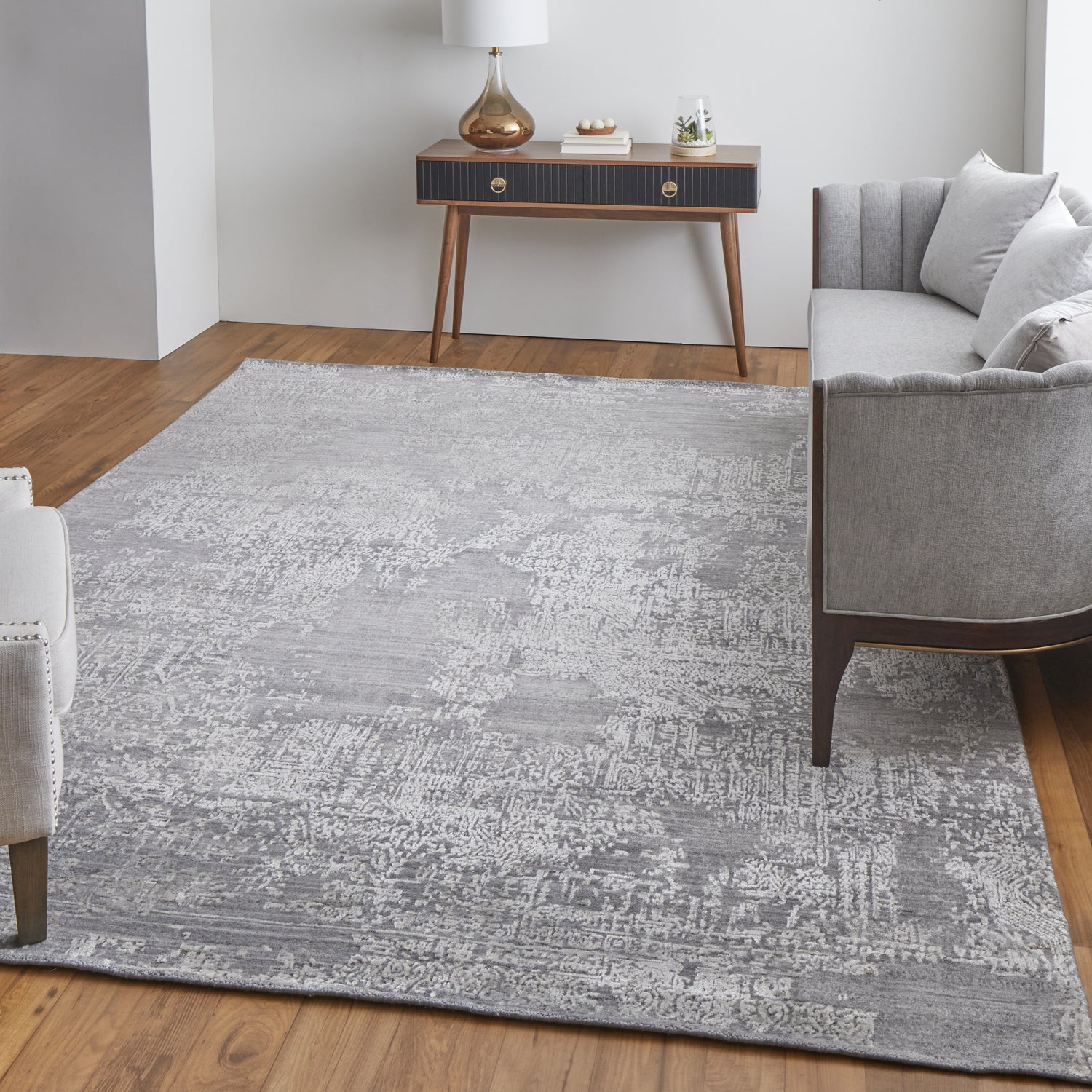 Feizy Eastfield Modern Abstract Distressed Brushstroke Pattern - Gray Area Rug