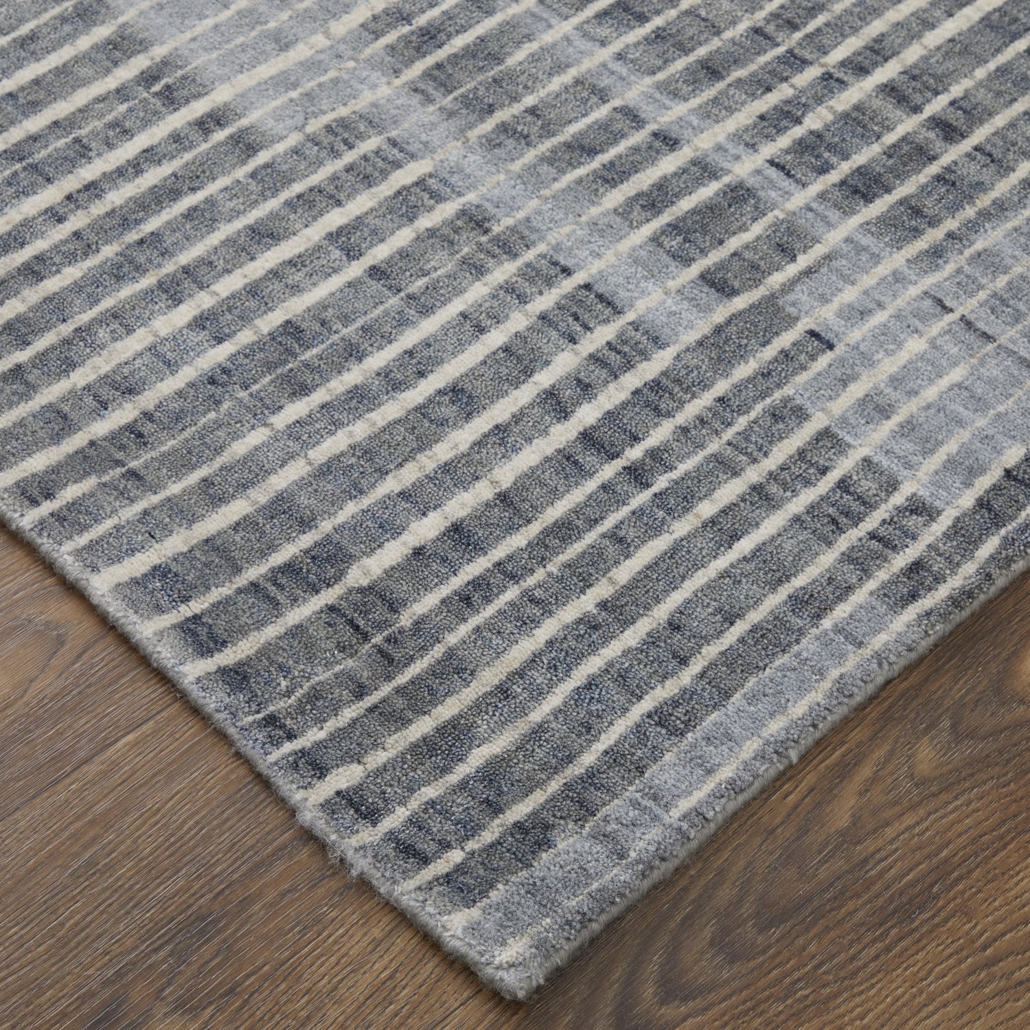 A handmade wool and viscose rug with a cool-toned abstract grid that looks effortlessly lived-in — the Eastfield brings quiet sophistication to any modern space.