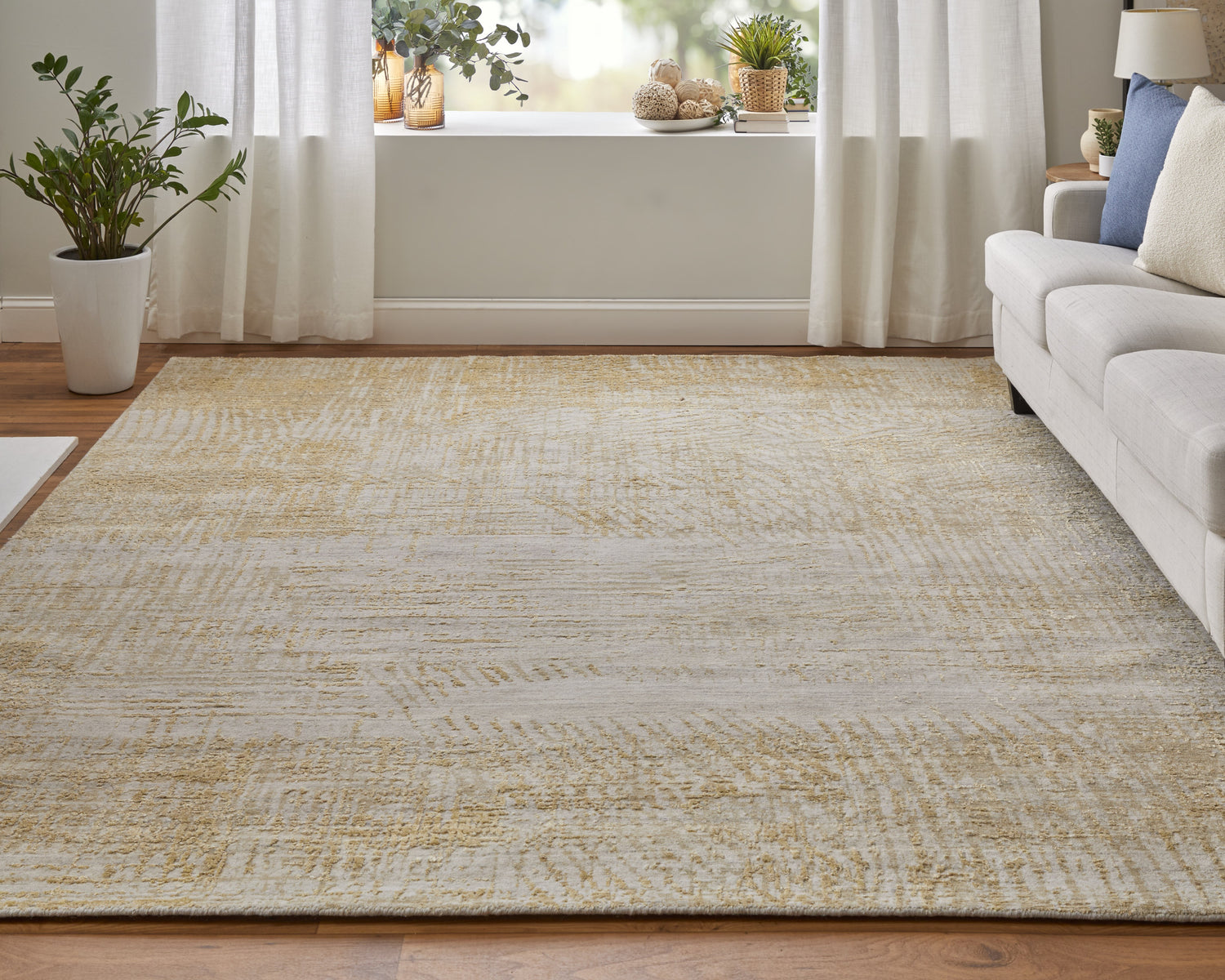 Feizy Eastfield Modern Abstract Distressed Textured Grid - Yellow/Ivory/Gold Area Rug
