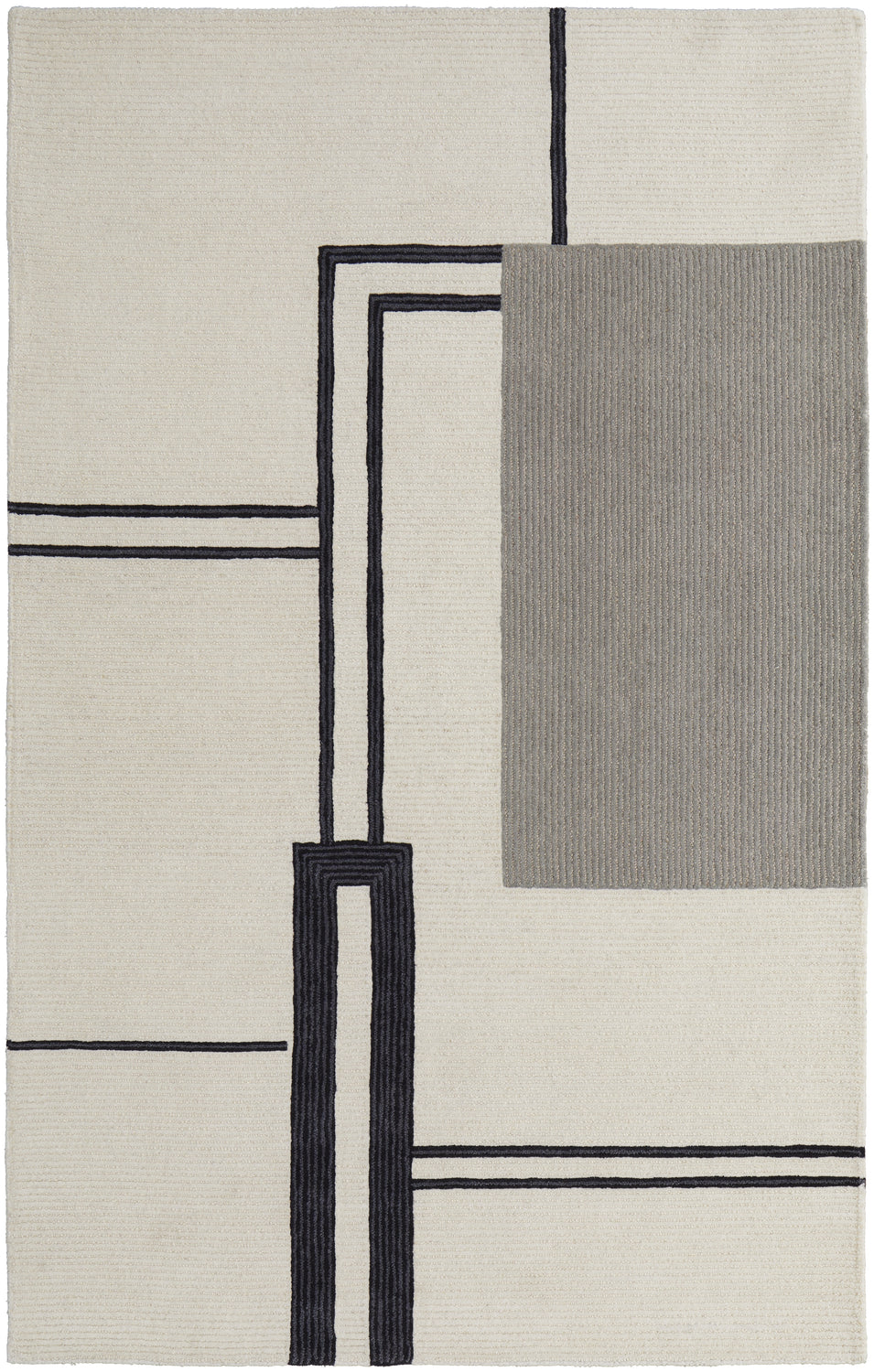 Feizy Maguire Transitional Abstract Geometric Asymmetric Lines - Ivory/Gray/Black Area Rug