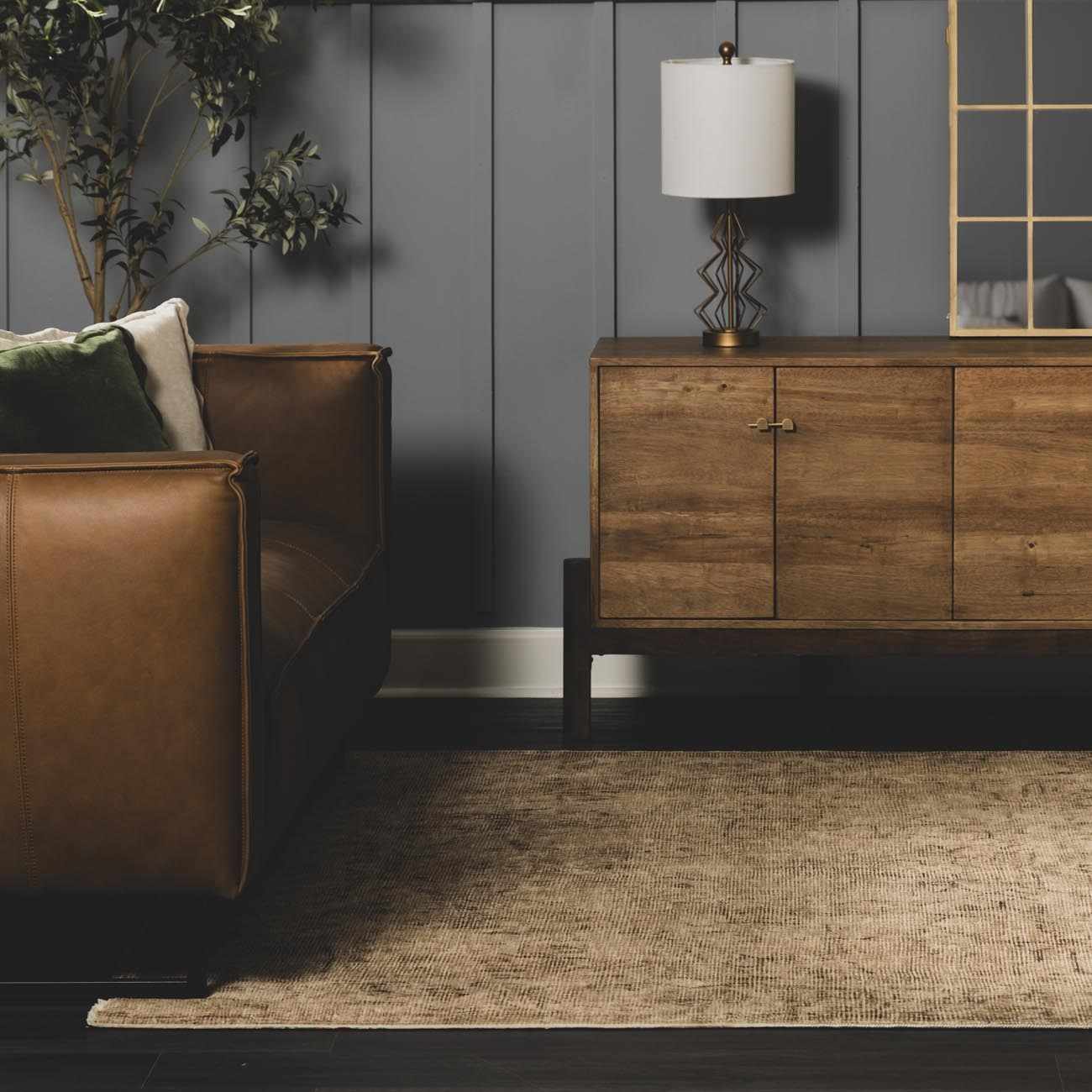 When selecting a living room rug, choose one that anchors your furniture by either placing all the legs on the rug or just the front legs, which helps define the seating area and enhances the room’s acoustics.