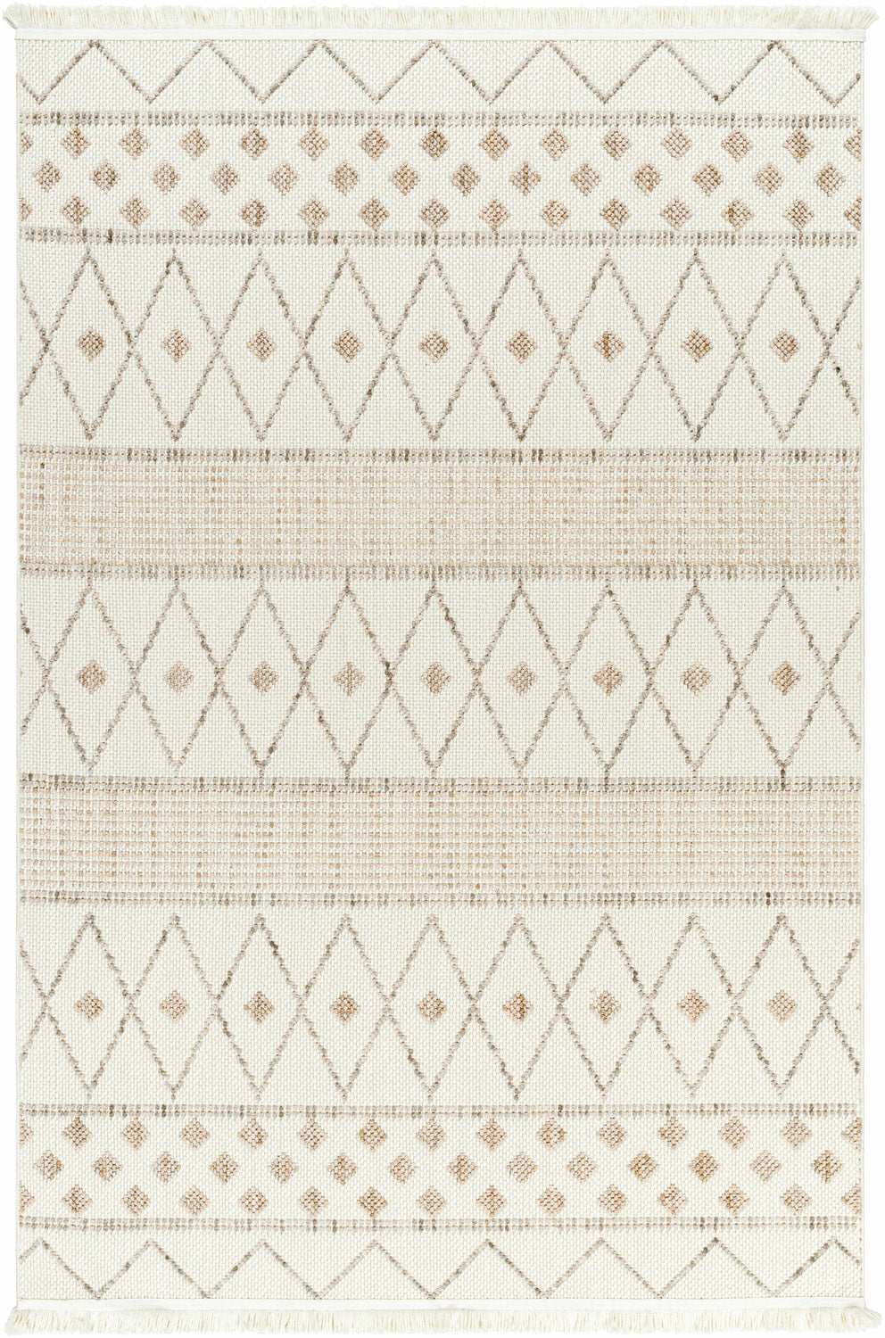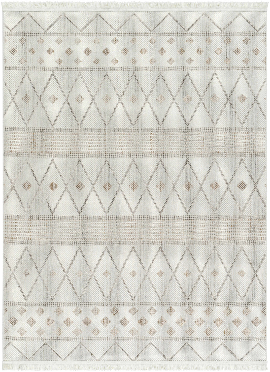 Introducing the Finch Area Rug, a mesmerizing and captivating piece of artistry. The intricate design combines Moroccan and Global influences for a truly unique look that will draw the eye in any room. This gorgeous rug is made from durable polyester in Turkey, and features a low pile construction ideal for high traffic areas. With its fringe detail adding texture and dimension to your space, this luxe area rug is sure to bring an element of sophistication to your home decor. Complete your look with a rug pad (not included) for added comfort underfoot.