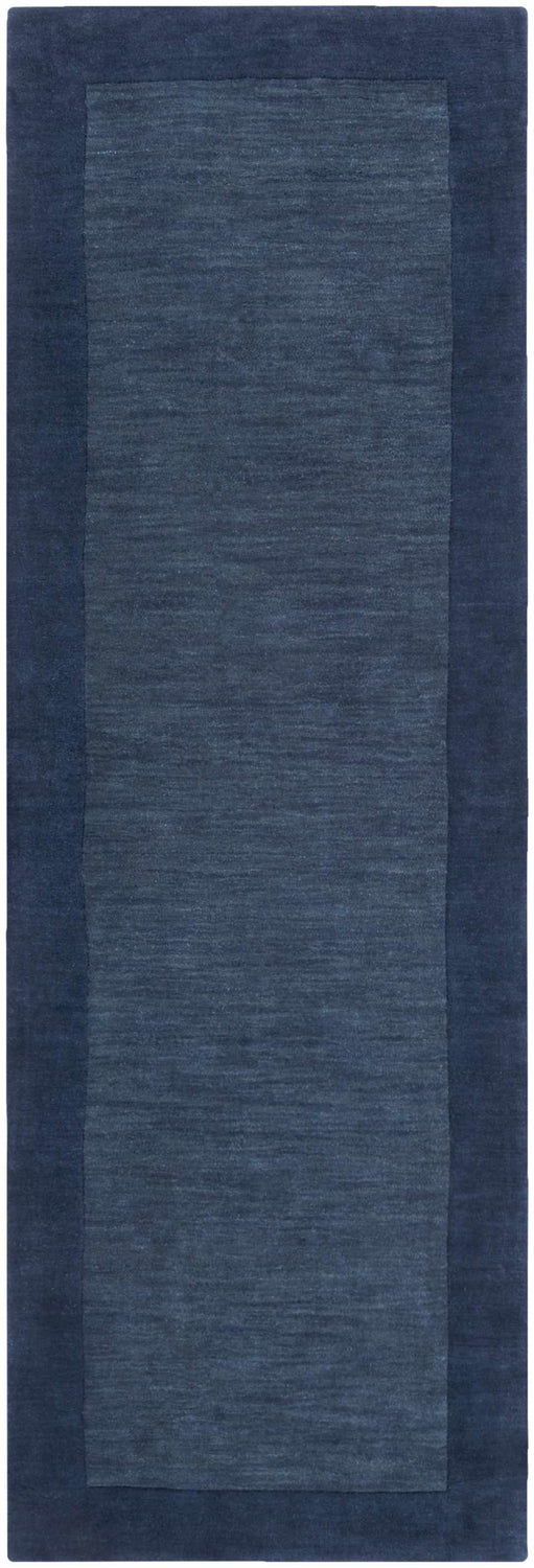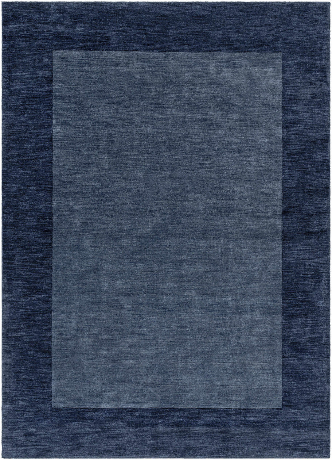 Introducing the Bordered Solid Ink Blue Wool Area Rug, a modern style statement piece to bring your home decor to life. Hand loomed in India with high-quality wool and a high/low pile, this rug will add softness and texture to any room. Perfect for contemporary spaces, the Bordered Solid Ink Blue Wool Rug is designed with durability in mind, so you can enjoy it for years to come. For best results, use with a rug pad (sold separately). Spot clean only.