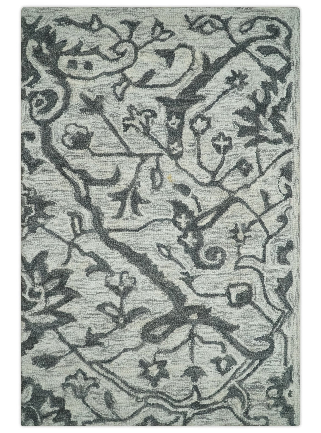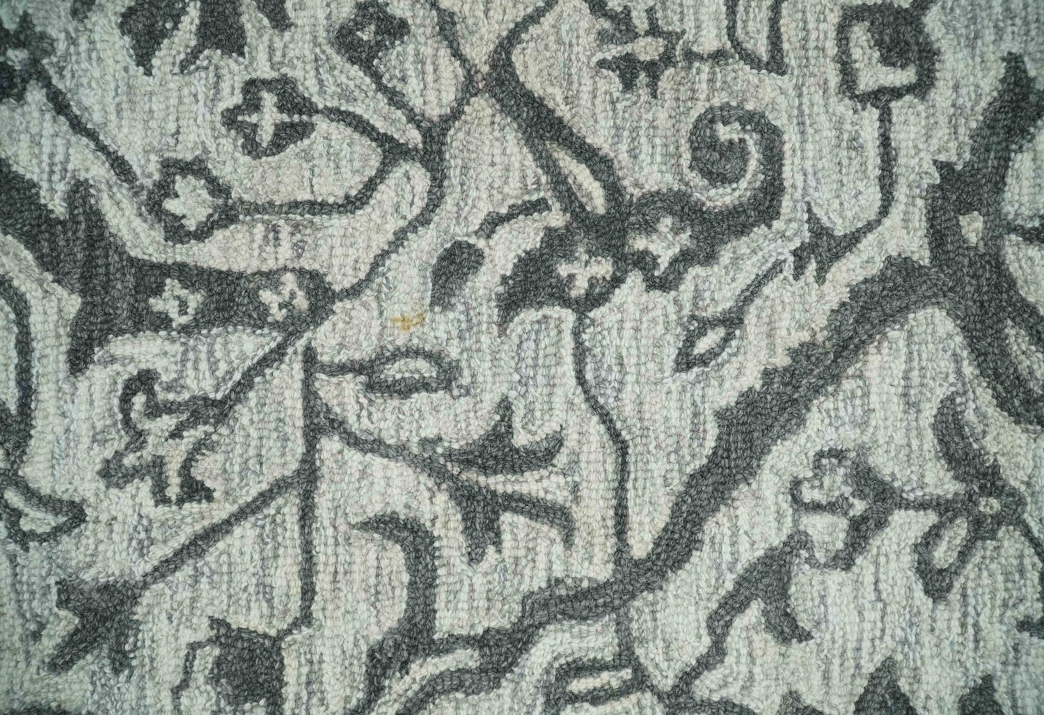 Floral Ivory and Charcoal Wool Hand Woven Layering Multi Size Area Rug
