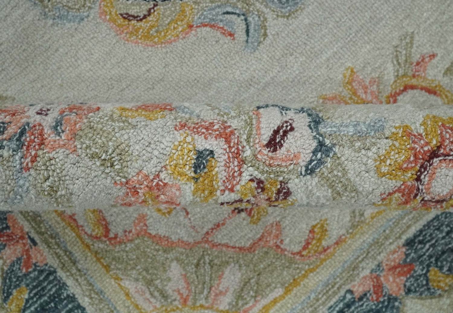 French Design Aubusson Custom Made Ivory, Light Green and Charcoal Hand Tufted wool Area Rug