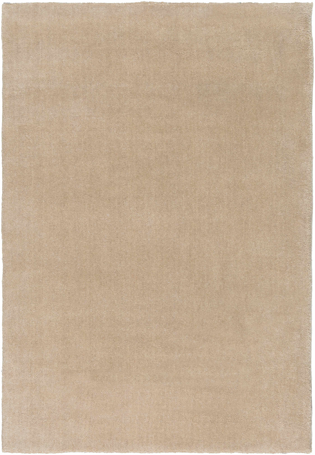 A warm, solid beige hand-loomed rug in wool and viscose — quietly luxurious, endlessly versatile, and the perfect neutral foundation for any modern space.