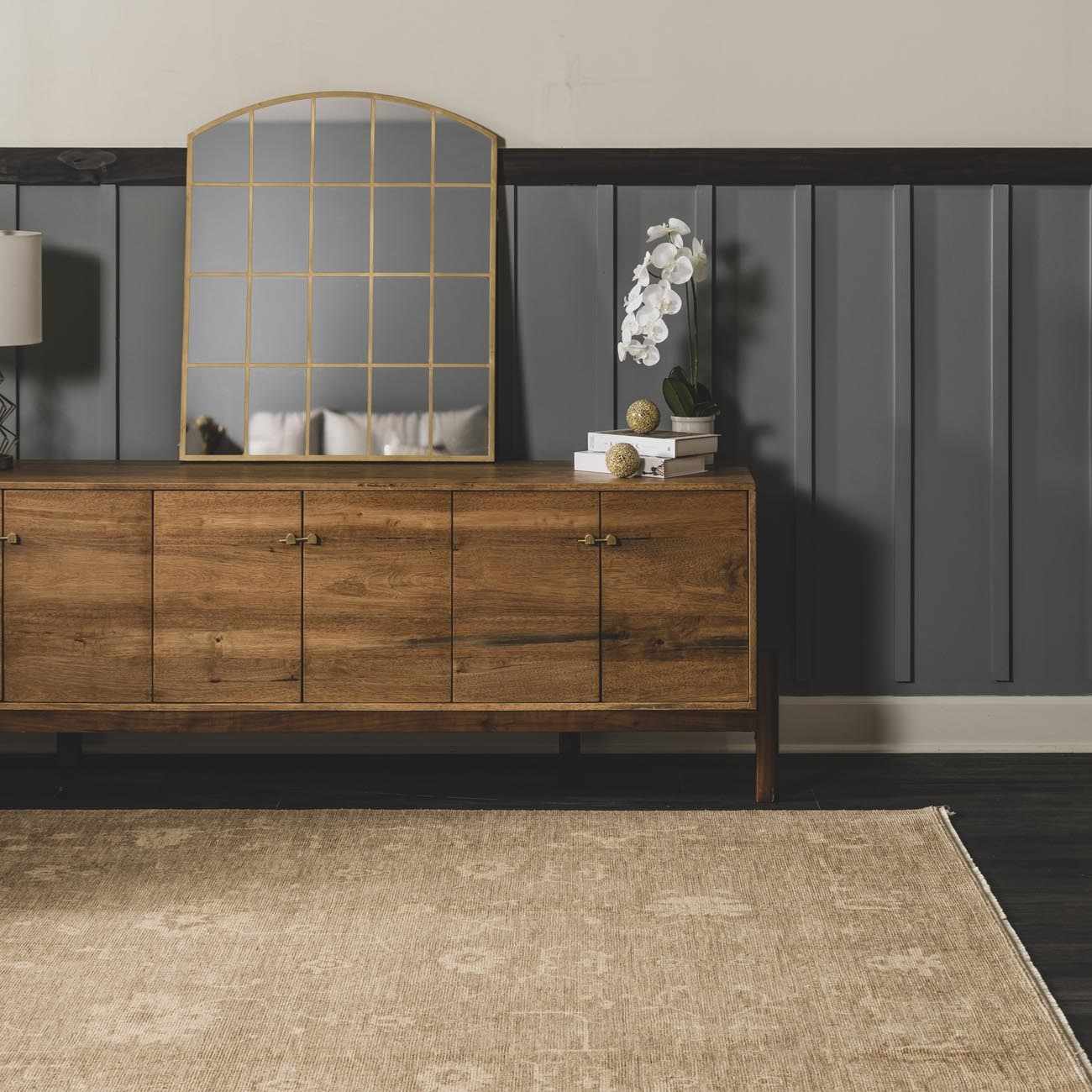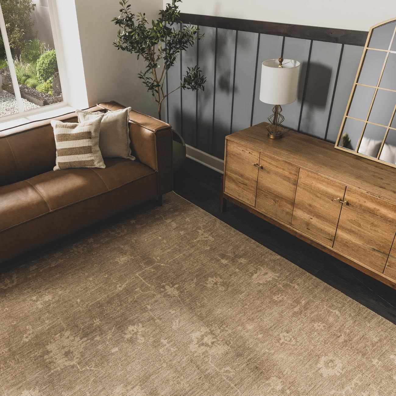When selecting a living room rug, choose one that anchors your furniture by either placing all the legs on the rug or just the front legs, which helps define the seating area and enhances the room’s acoustics.
