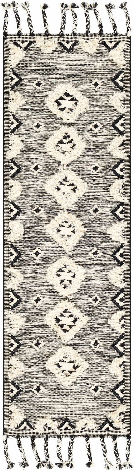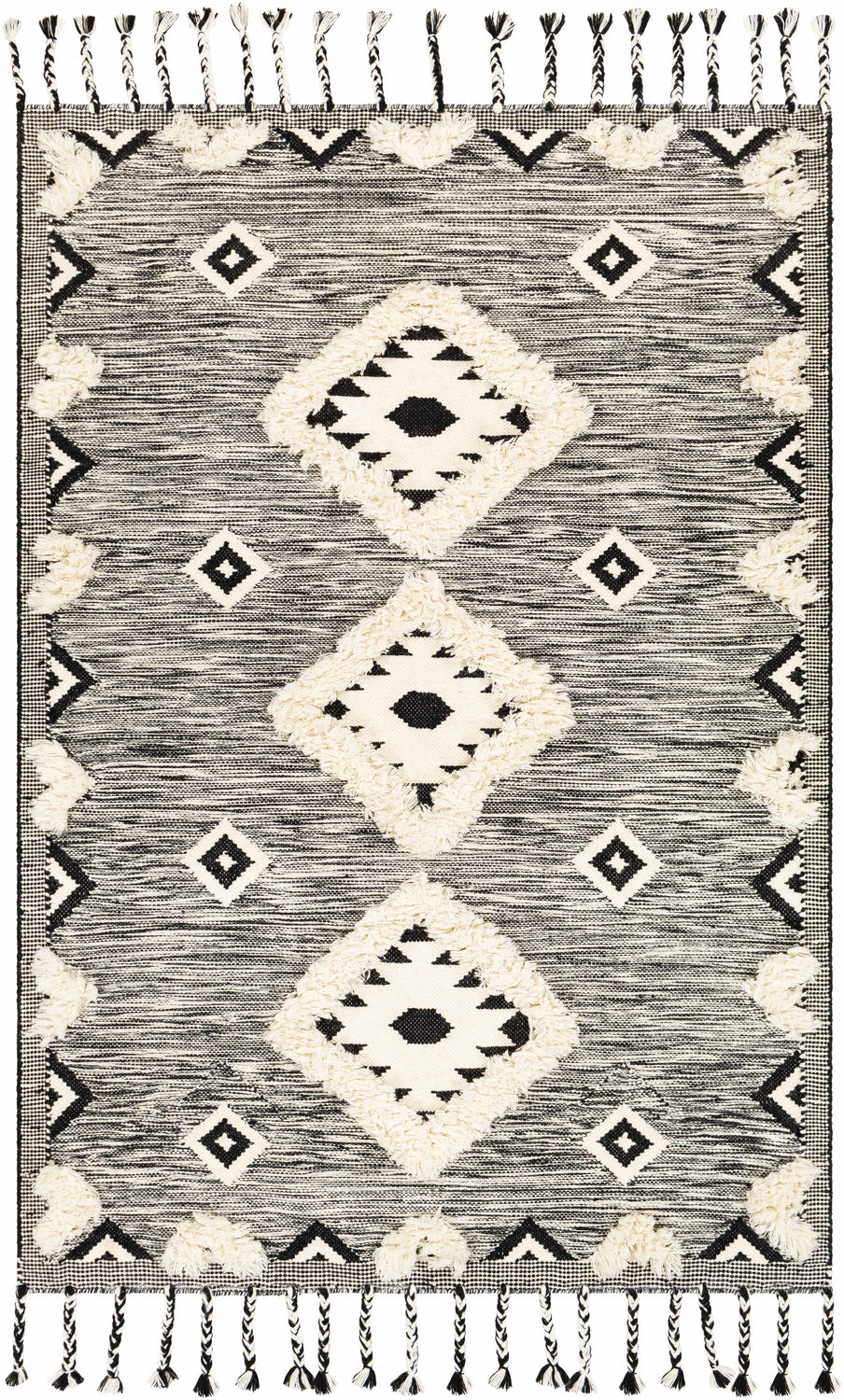 Discover the allure of the Gardner Cream on Gray Wool Tassel Rug Moroccan Global hand woven rug, meticulously handcrafted in India from 100% wool. This unique piece not only boasts an exotic Moroccan design but also a plush pile that adds texture and warmth to any room. The rug's distinctive fringe lends an extra touch of elegance, making it a standout addition to your home decor. For the best user experience, we recommend pairing this rug with a rug pad to prevent slipping or sliding. And when it comes to cleaning, no worries - simply spot clean with water! A stunning blend of comfort and style, this Gardner Cream on Gray Wool Tassel Rug rug is sure to elevate your space.