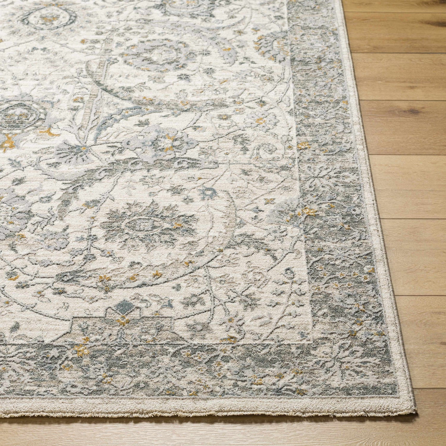 This gorgeous Gauge Cream & Gray Blue Area Rug adds a touch of elegance to your home. The updated traditional style is perfect for adding sophistication to any room in the house. This machine-woven rug is made from polyester and crafted with care in Turkey, making it a high-quality piece that will last for years. The medium pile is ideal for high traffic areas, so you can be sure that this rug can stand up to wear and tear without sacrificing comfort underfoot. For added protection, pair this piece with a rug pad (not included). To keep your area rug looking its best, spot clean with mild detergent as needed.