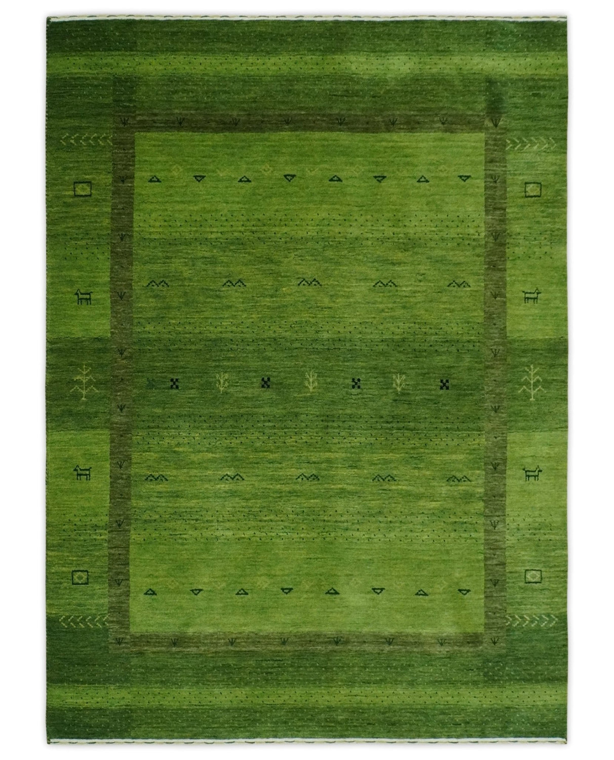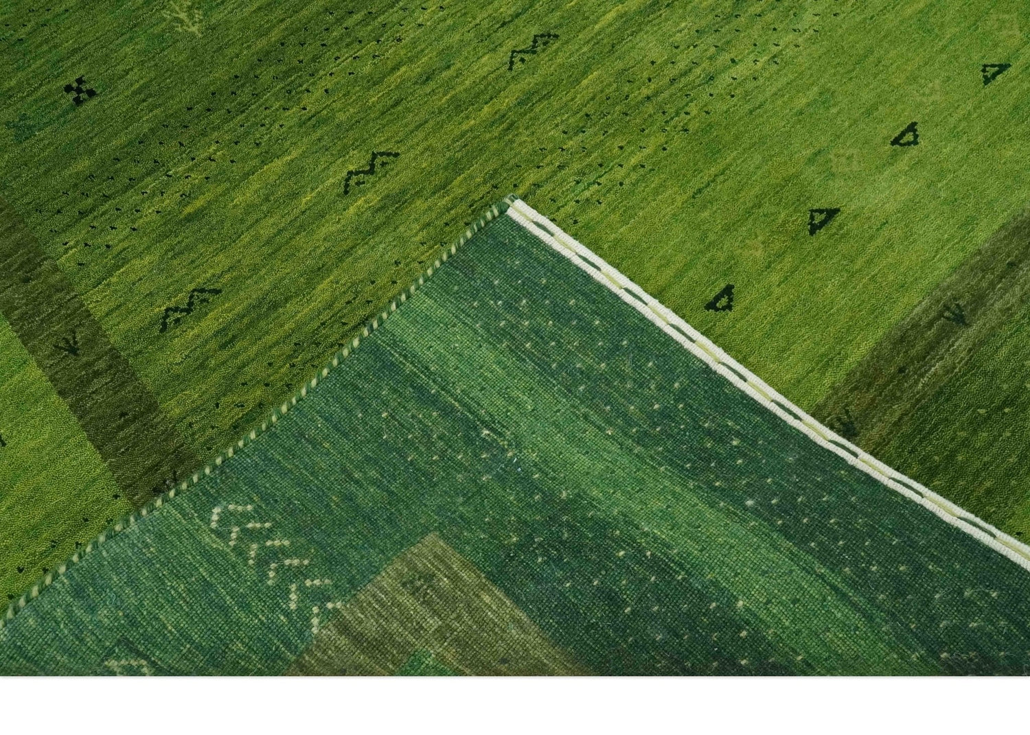 Geometrical Stripes Design Green Hand loom Multi Size wool Area Rug