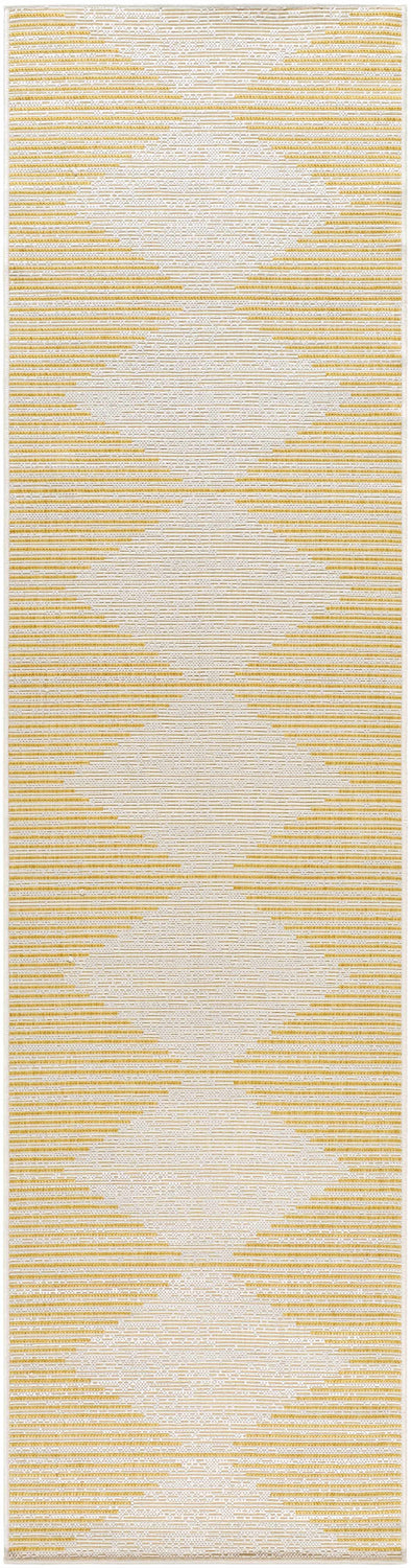 Bring the beauty of a global style to your home with this Stephan Yellow Outdoor Area Rug. This machine-woven, outdoor safe rug is constructed out of durable Polypropylene for long-term use, even in high traffic areas. For optimal performance, we recommend using a rug pad underneath (not included). Cleaning is easy with just hosing off with water and hanging to dry. Made in Turkey, this rug will make a stunning addition to any room.