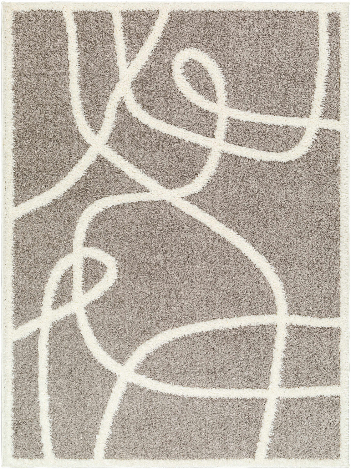 Bold cream swirls drift across a warm taupe ground in this plush, modern statement rug — soft underfoot, stain resistant, and effortlessly Scandinavian in style.