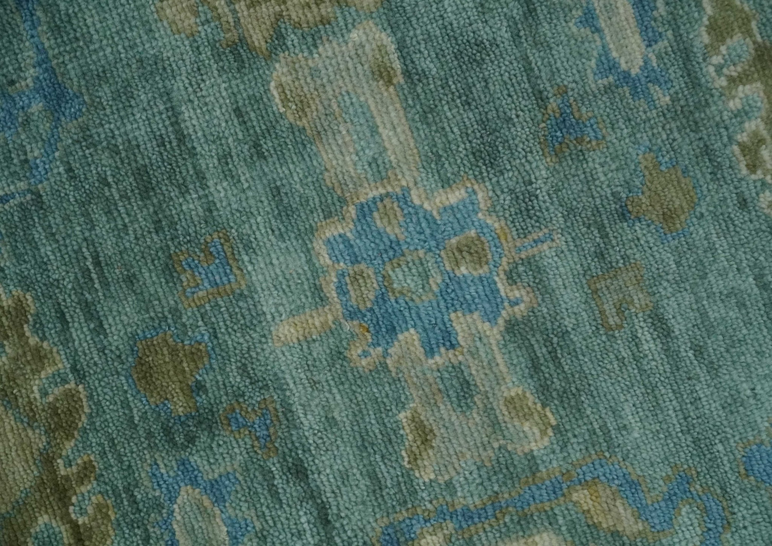 Green, Beige and Blue Hand knotted Traditional Oushak Multi Size Wool Area Rug