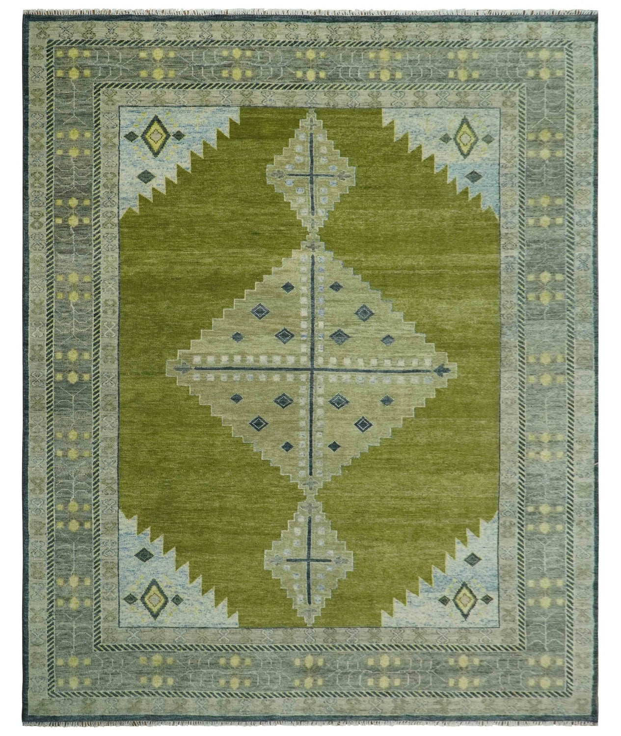 Green, Blue and Gray Hand Knotted Traditional Heriz Multi Size wool area rug