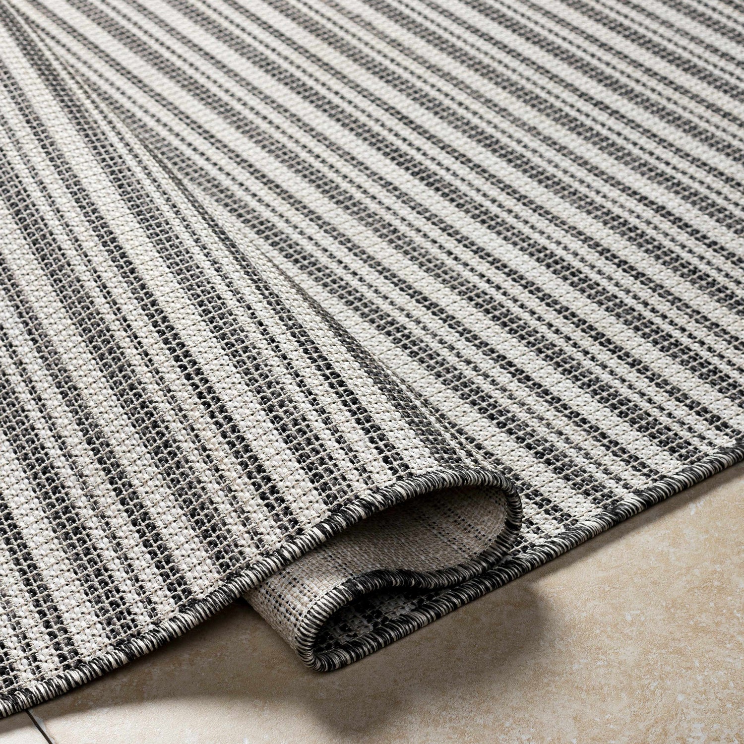 The Greg Black Area Rug is the perfect way to update your outdoor space with modern style. Constructed of polypropylene, this machine woven rug is weather-resistant and safe for use outdoors. With no pile and a high traffic rating, this area rug will stand up to any wear and tear while still looking beautiful. Made in Turkey, it's sure to add a touch of sophistication to any area. For best results, pair with a rug pad (sold separately) for added comfort and longevity. Cleaning should be done professionally only for best results.
