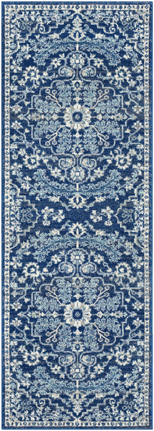 Elevate your home decor with the Blue Bodrum Area Rug. This updated traditional piece, manufactured in Turkey, adds a timeless touch to any space. Constructed with machine-woven polypropylene, it features a medium pile that stands up beautifully under high traffic conditions. The use of a rug pad is recommended to maintain its position and minimize wear and tear over time. When it comes to cleaning, simply spot clean with mild detergent. This elegant addition to your decor will instantly enhance the aesthetic appeal of your living or work space.