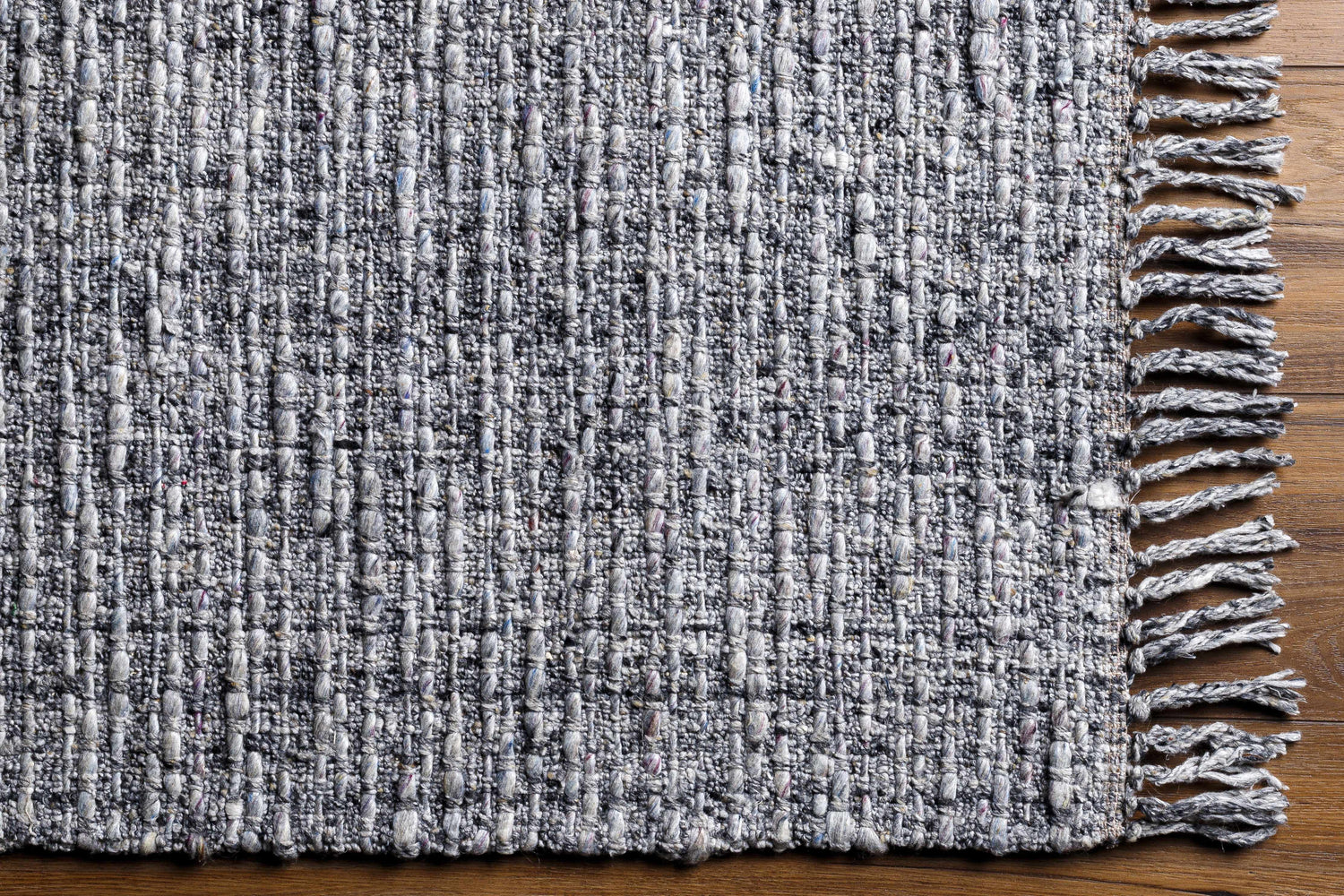 This Amiel Gray Hand Woven Area Rug is the perfect way to make a statement in your home. This modern style rug features a fringe and is hand-woven with a combination of polyester, viscose, and wool for ultimate softness and durability. The no-pile construction ensures this rug will stand up to everyday use while staying beautiful. Made in India, this rug will bring lasting beauty to any room you choose. To ensure maximum comfort, we recommend using a rug pad (not included). Add this eye-catching piece to your space today!