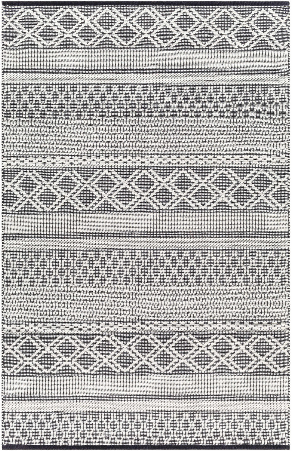 This Hala Area Rug will add a modern touch to any room. This hand-woven piece is constructed from a blend of cotton, polyester, and wool for a soft yet durable texture. The no-pile construction makes it ideal for high traffic areas. The beautiful design and color make this rug an ideal way to complete the look of your home. Made in India, this piece is sure to be a timeless addition to your decor. Recommended use with rug pad (not included) for maximum comfort and protection.