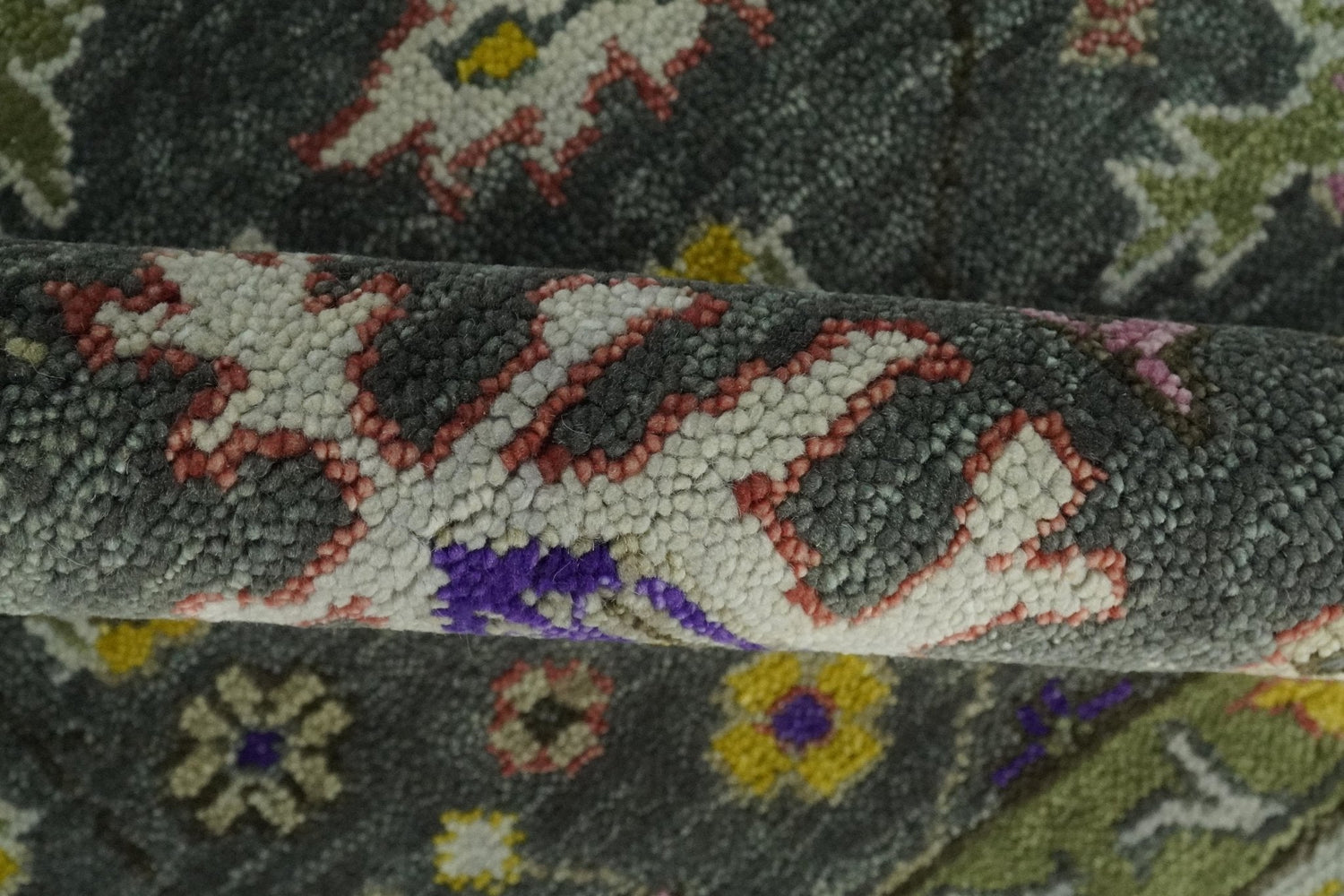 Hand Knotted Charcoal, Ivory and Green Traditional Oushak Custom Made Wool Area Rug