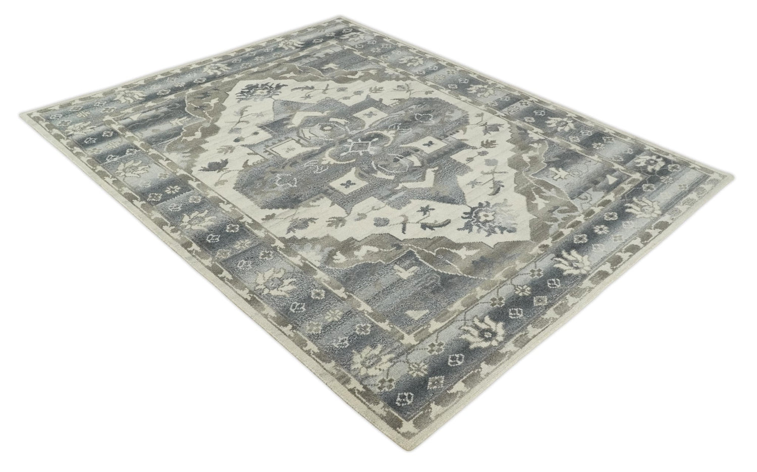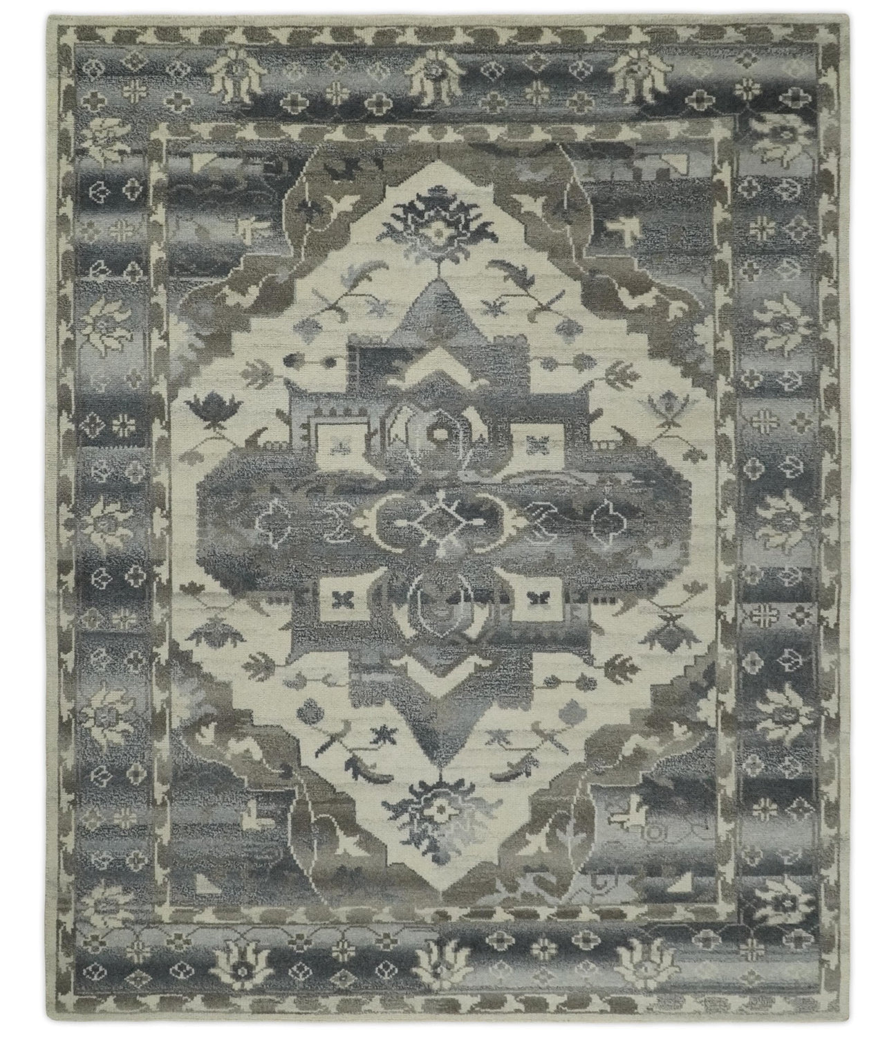 Hand Knotted Gray, Beige and Charcoal Traditional Heriz Serapi Multi size Wool Area Rug, Kids, Living Room and Bedroom Rug