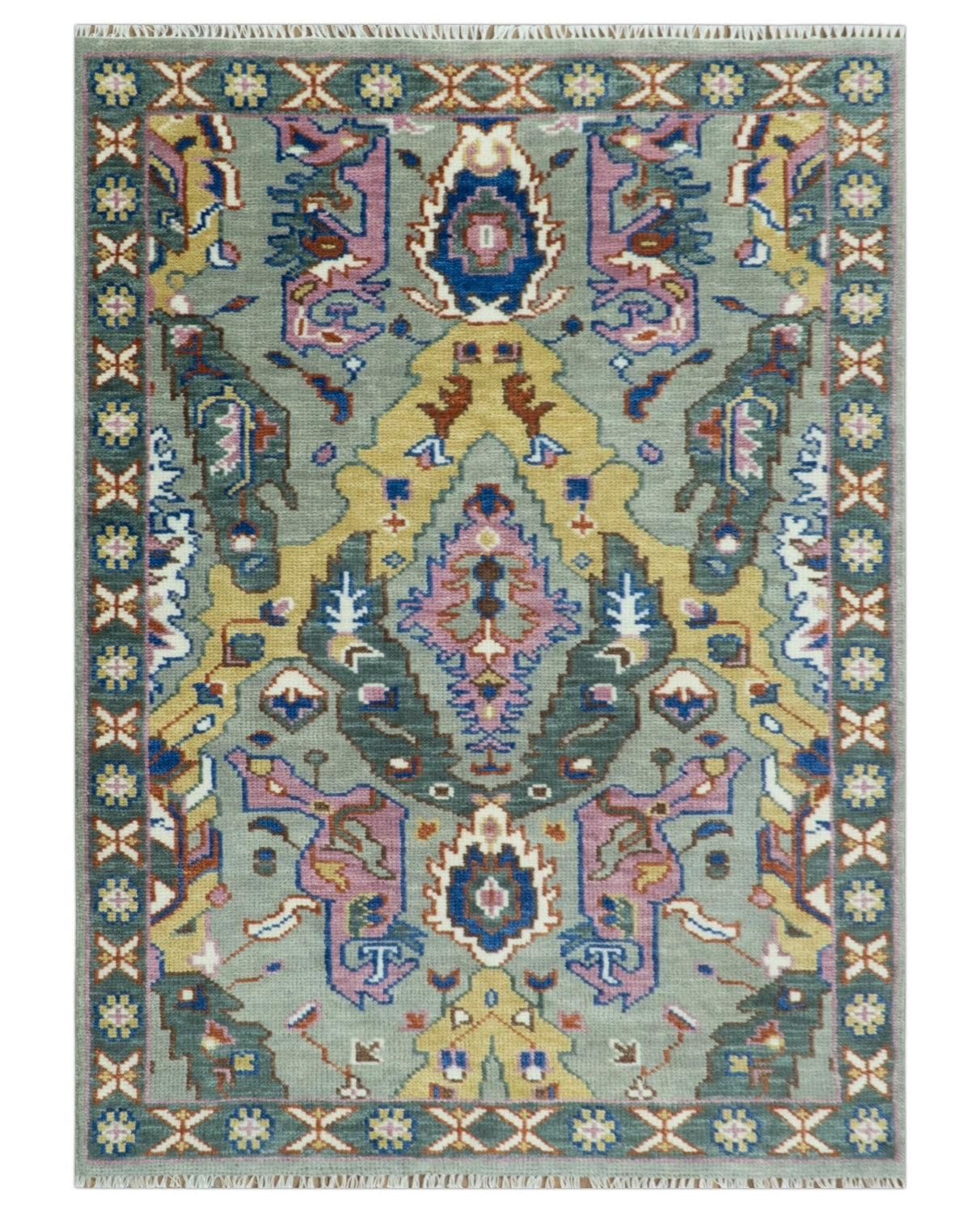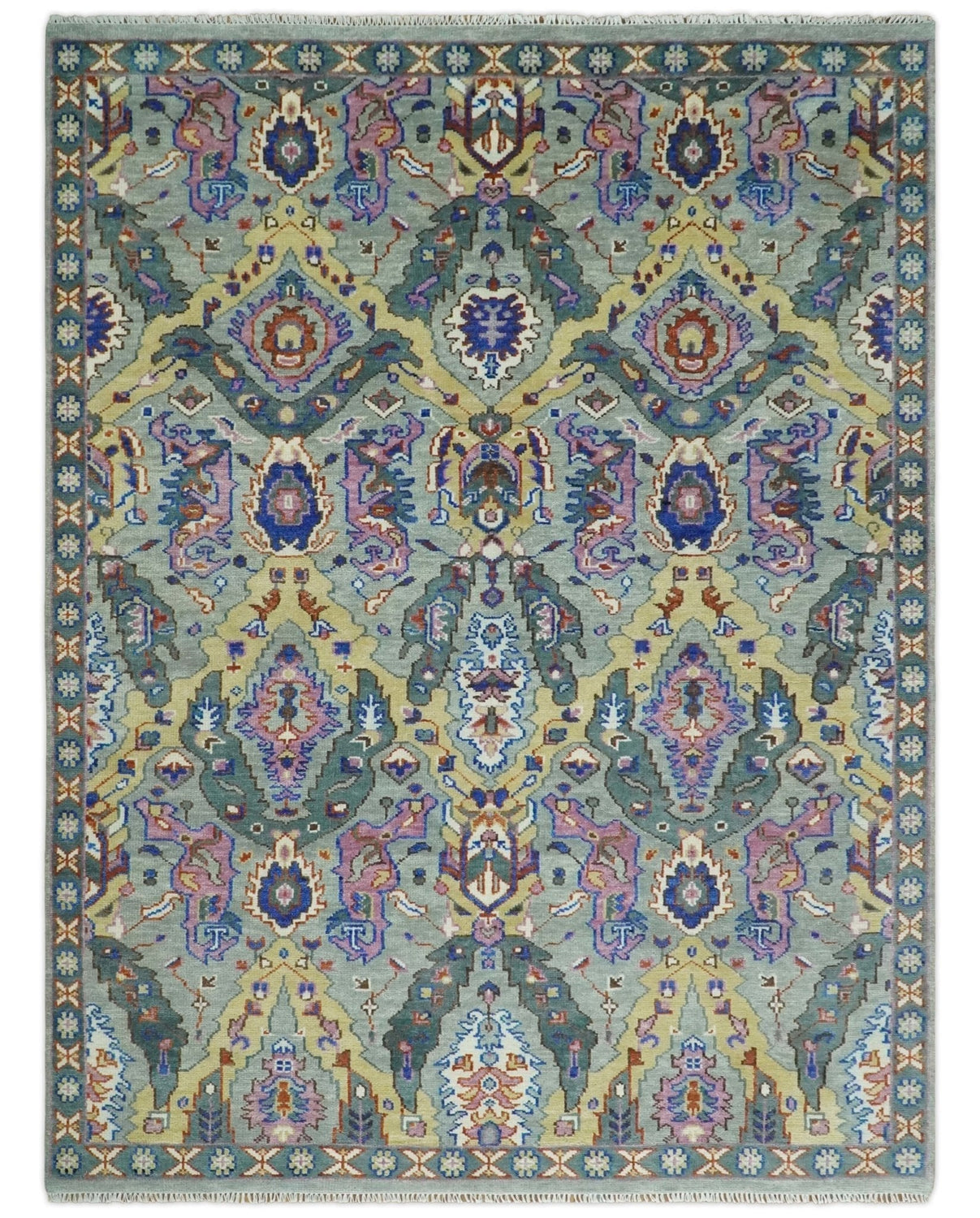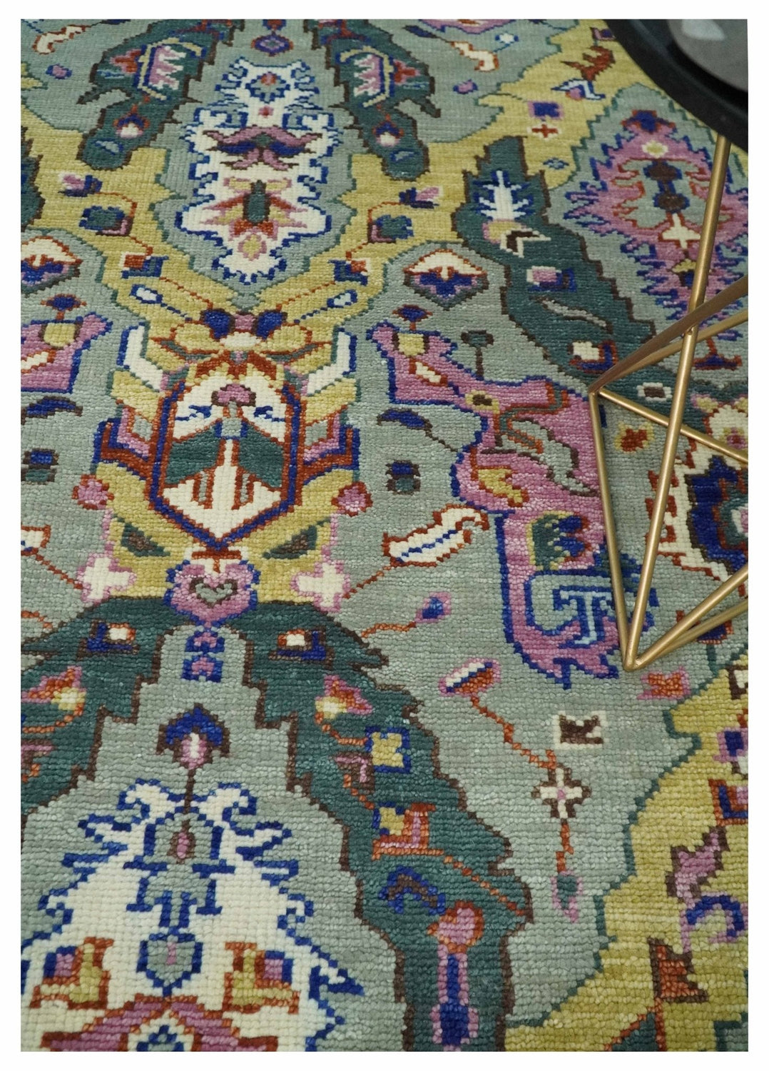 Hand knotted Green, Pink and Gold Traditional large design Antique Oushak Custom Made wool Area Rug