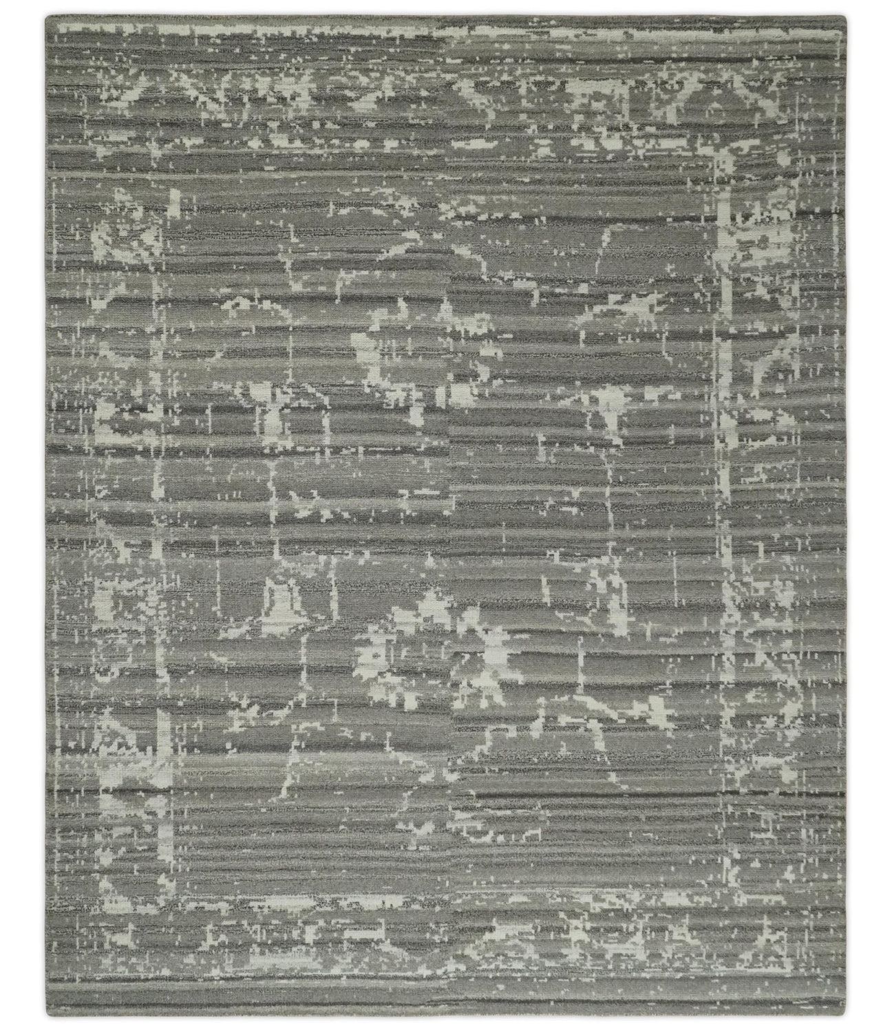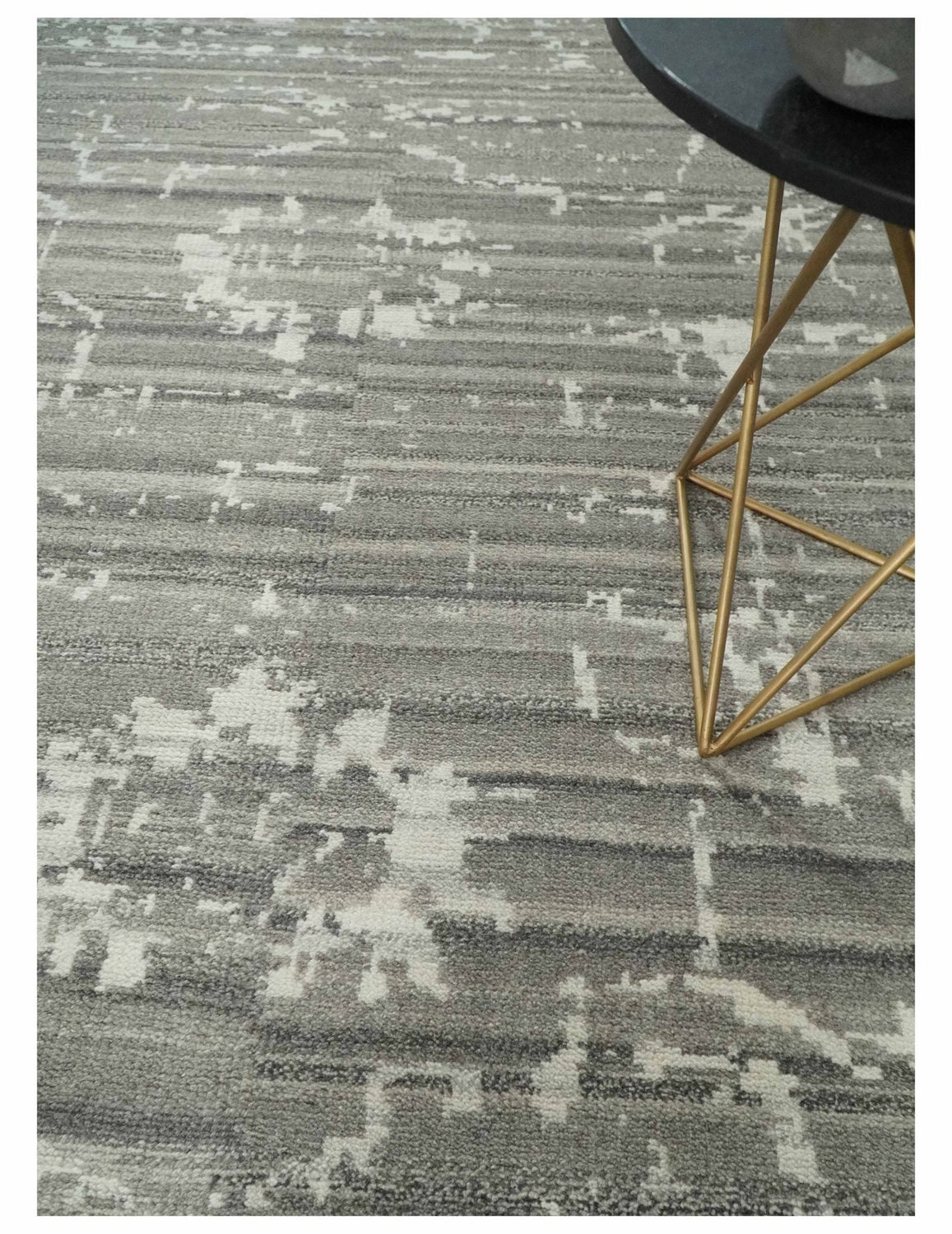 Hand Knotted Ivory and Charcoal Traditional Abstract Natural Wool Custom Made Area Rug, Kids, Living Room and Bedroom Rug