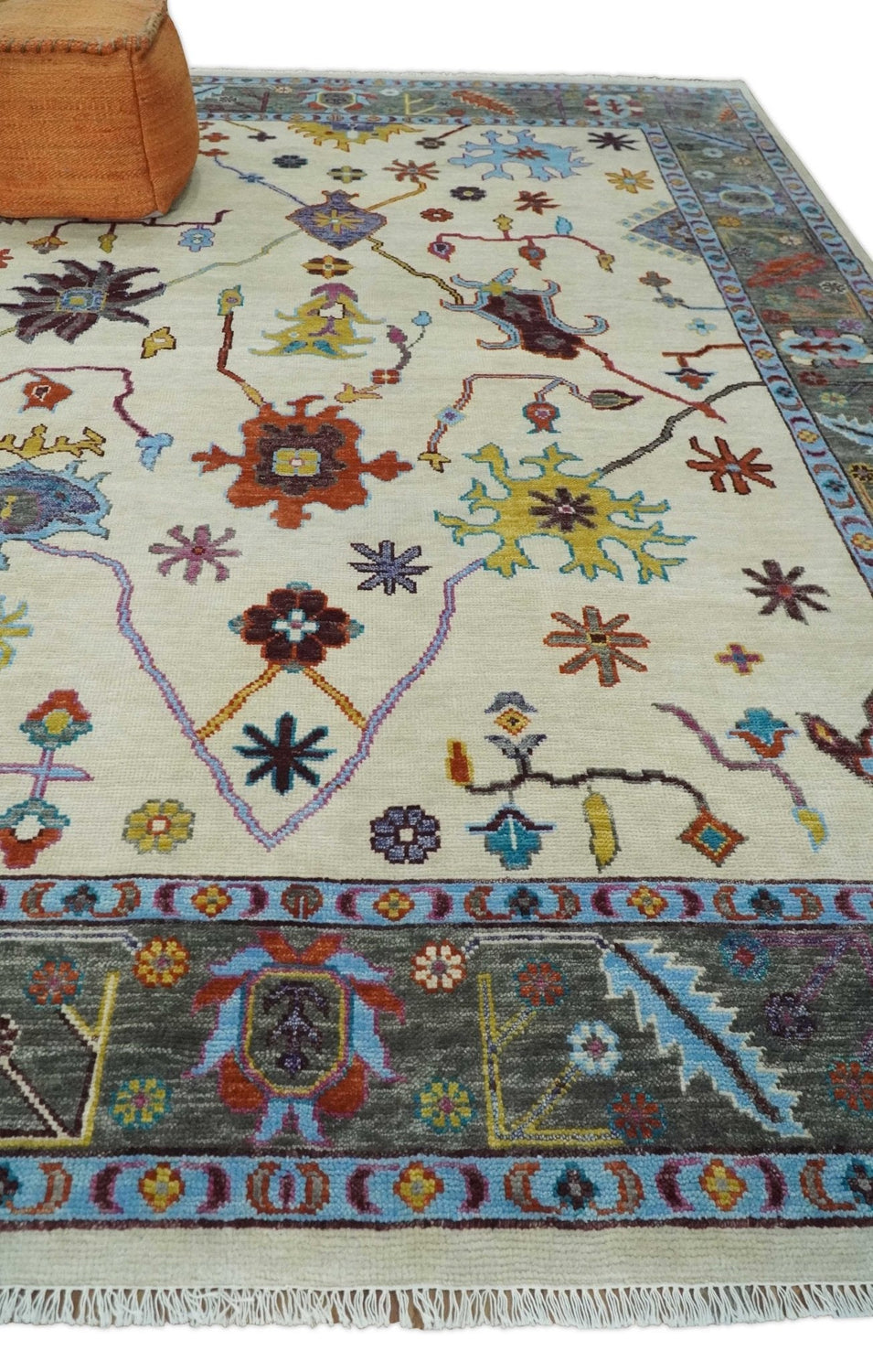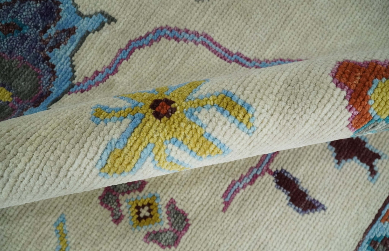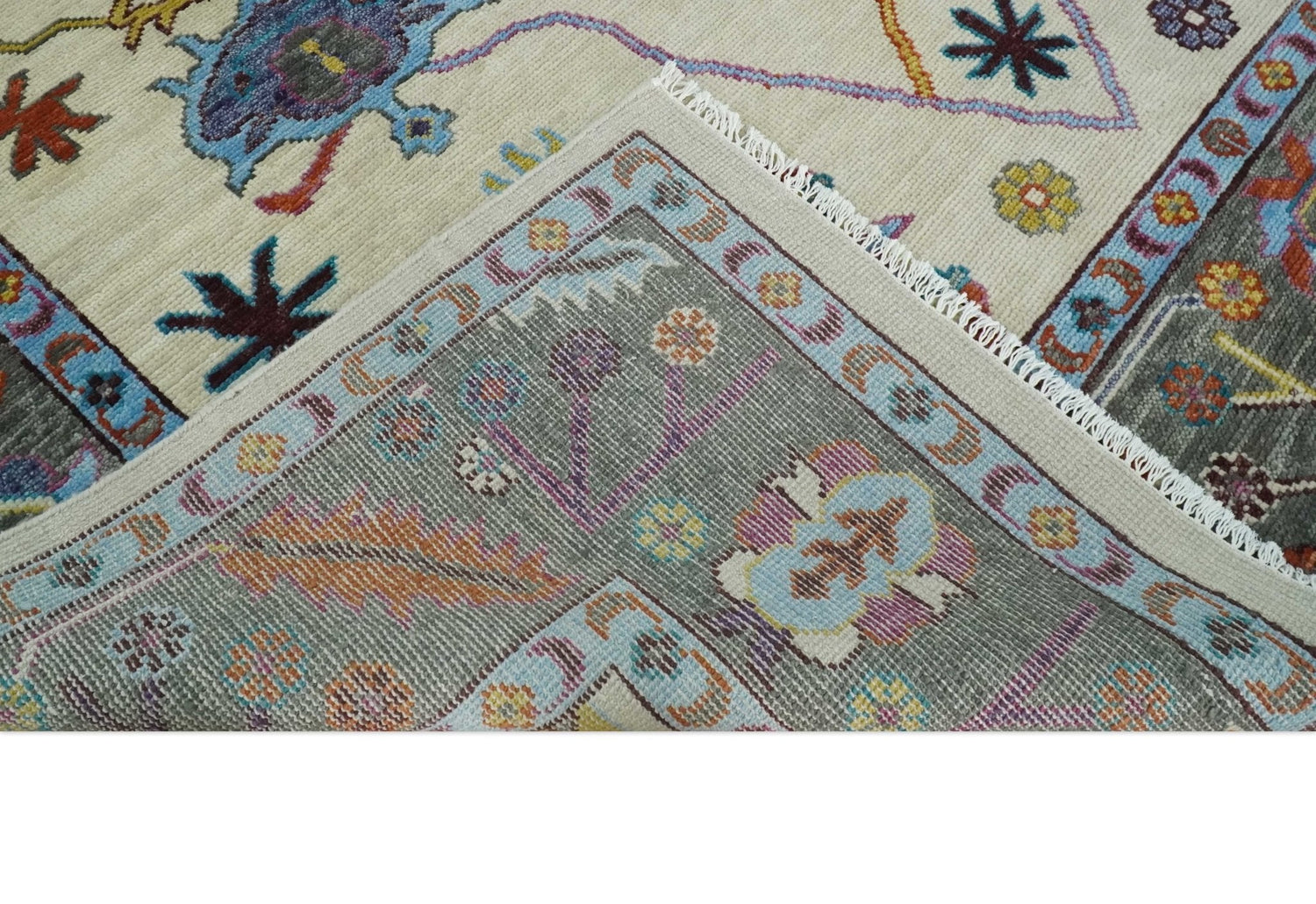 Hand Knotted Ivory, Gray and Blue Traditional Oushak Multi Size Wool Area Rug
