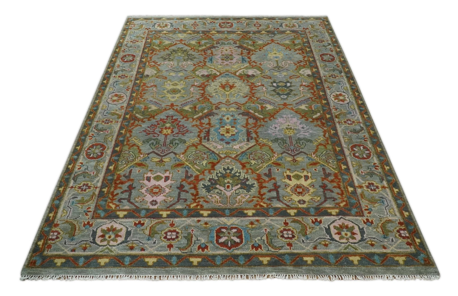 Hand knotted Olive, Rust and Gray Traditional Antique Moss Oushak Multi Size wool Area Rug
